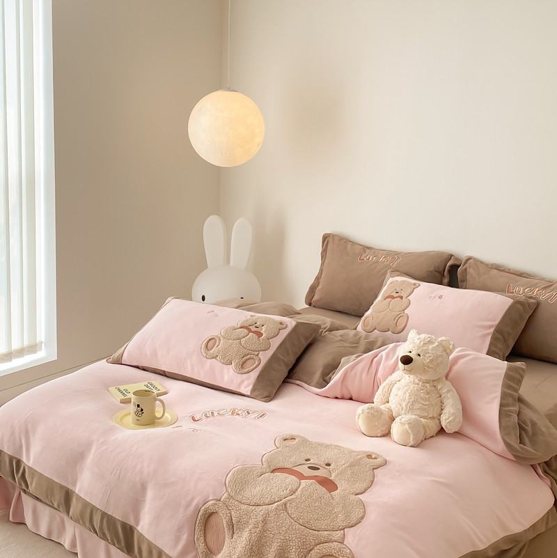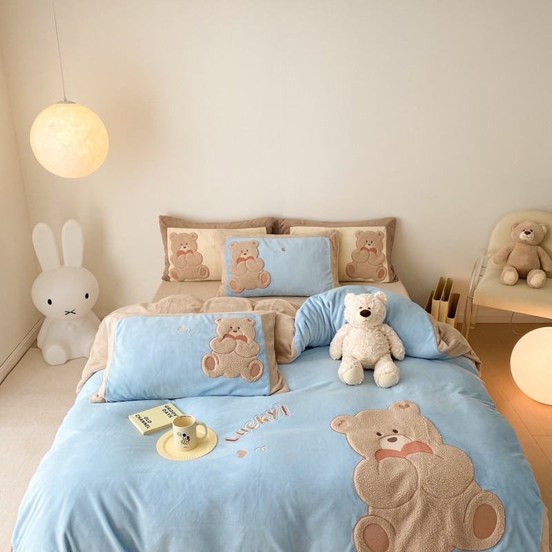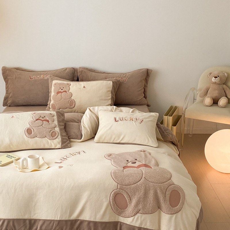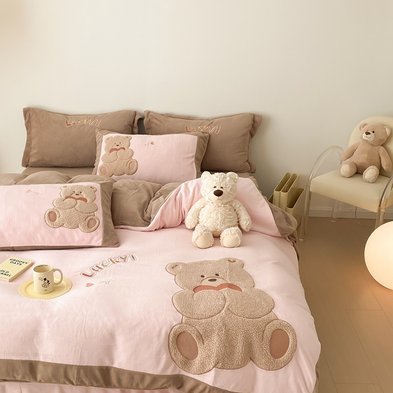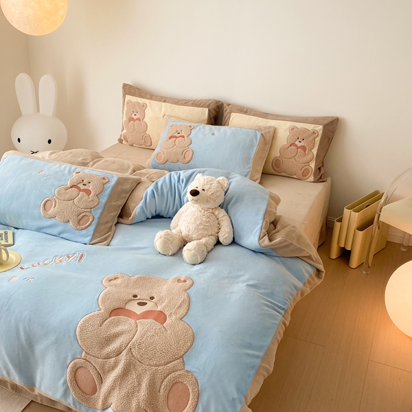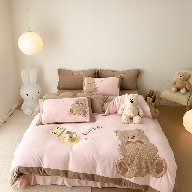 (总)橘滋 2022新款高端系列牛奶绒贴布绣四件套-爱心熊