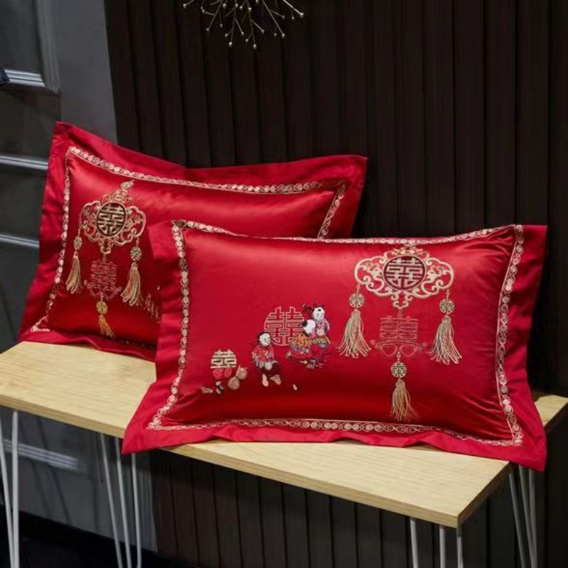 (总)丰淘2022新款全棉绣花婚庆枕套