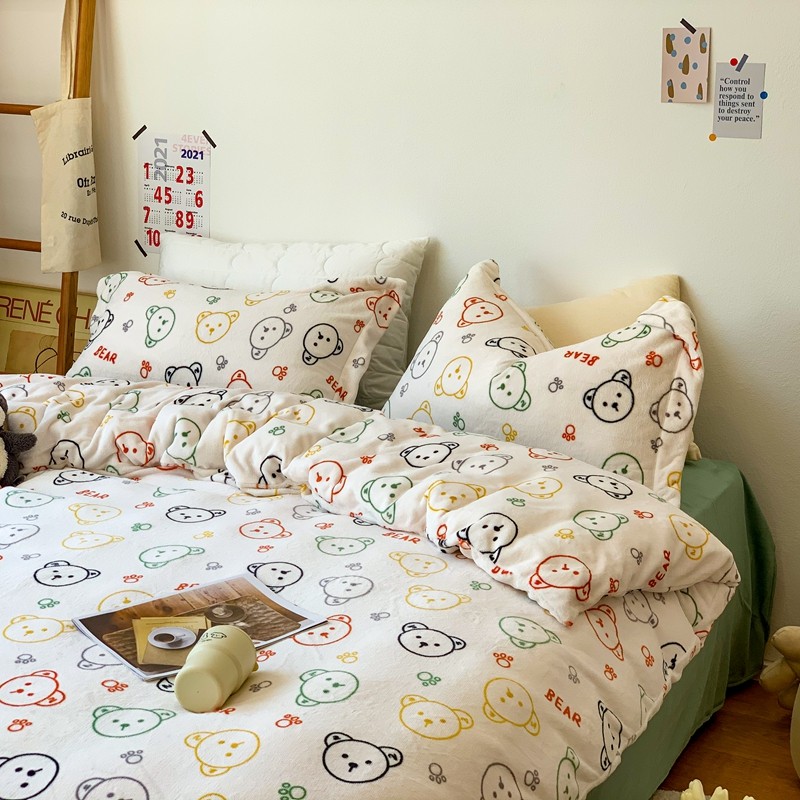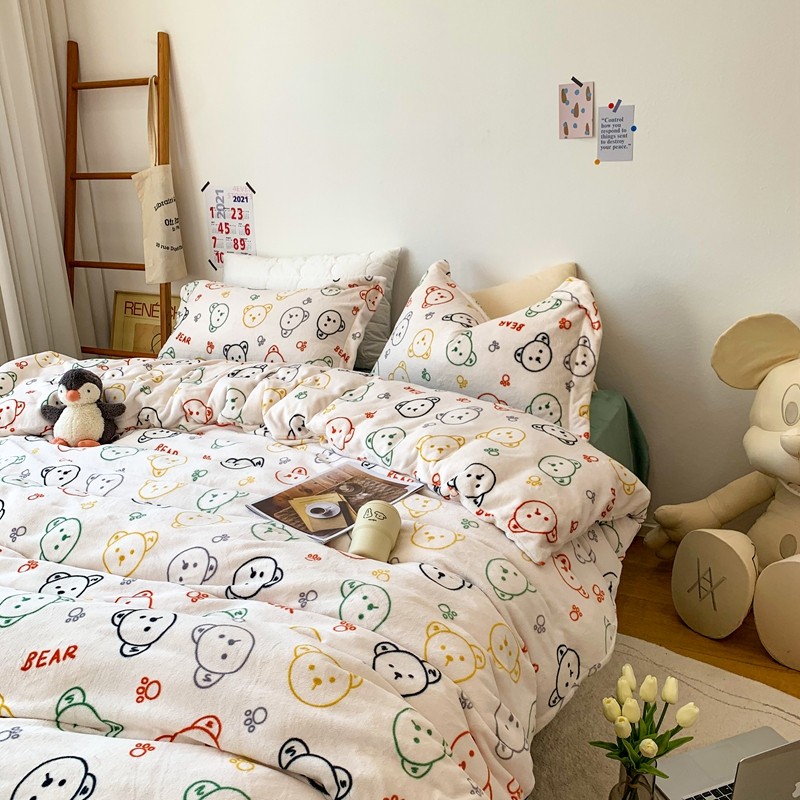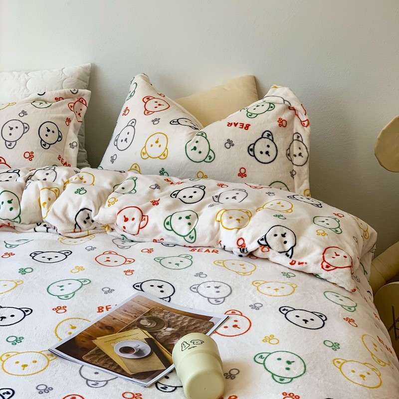 商品名称:时年 2022新款全消光牛奶绒印花四件套 彩色小熊