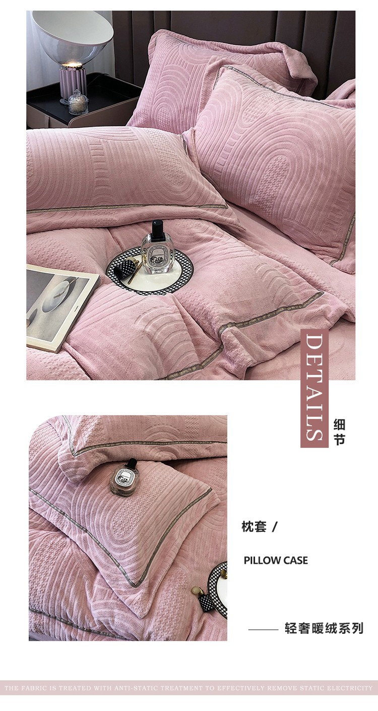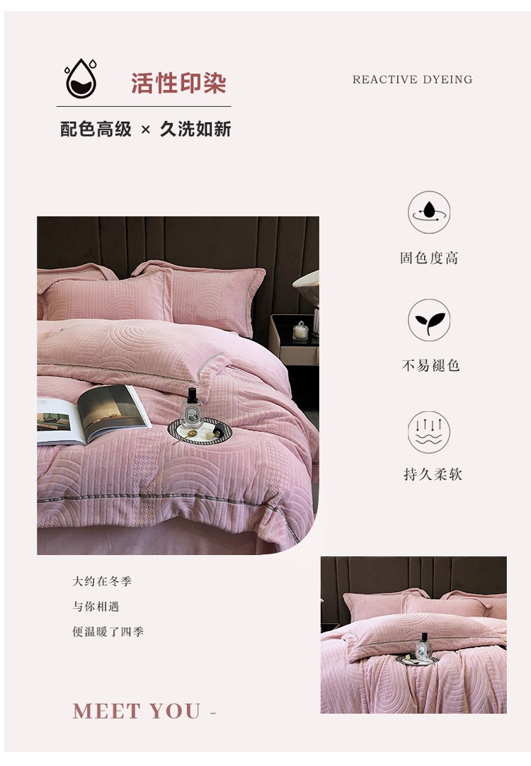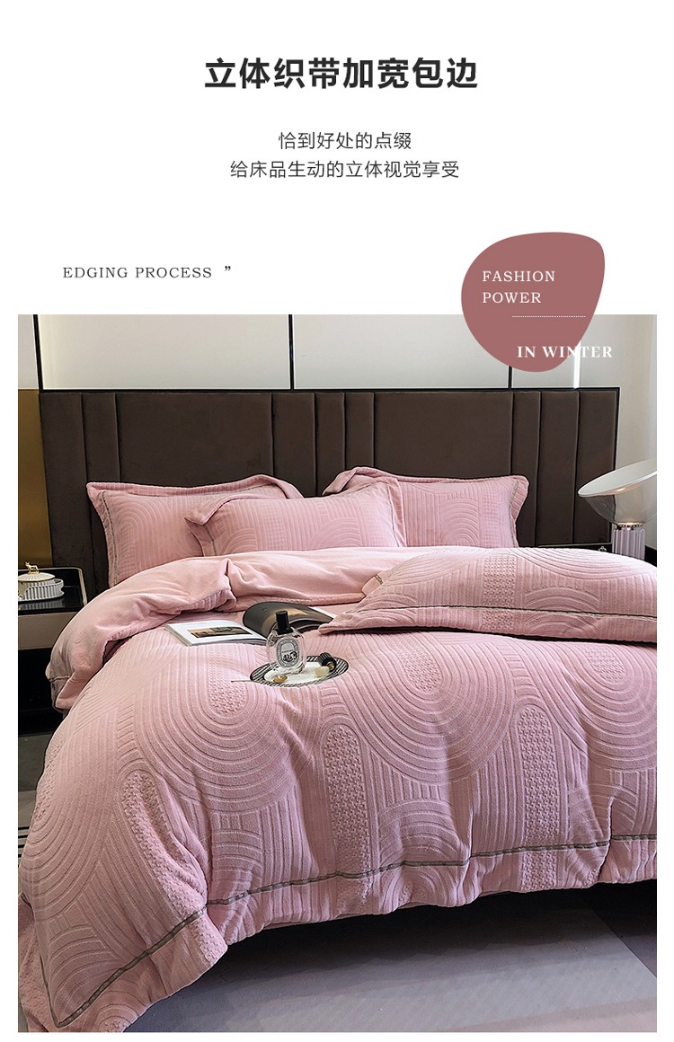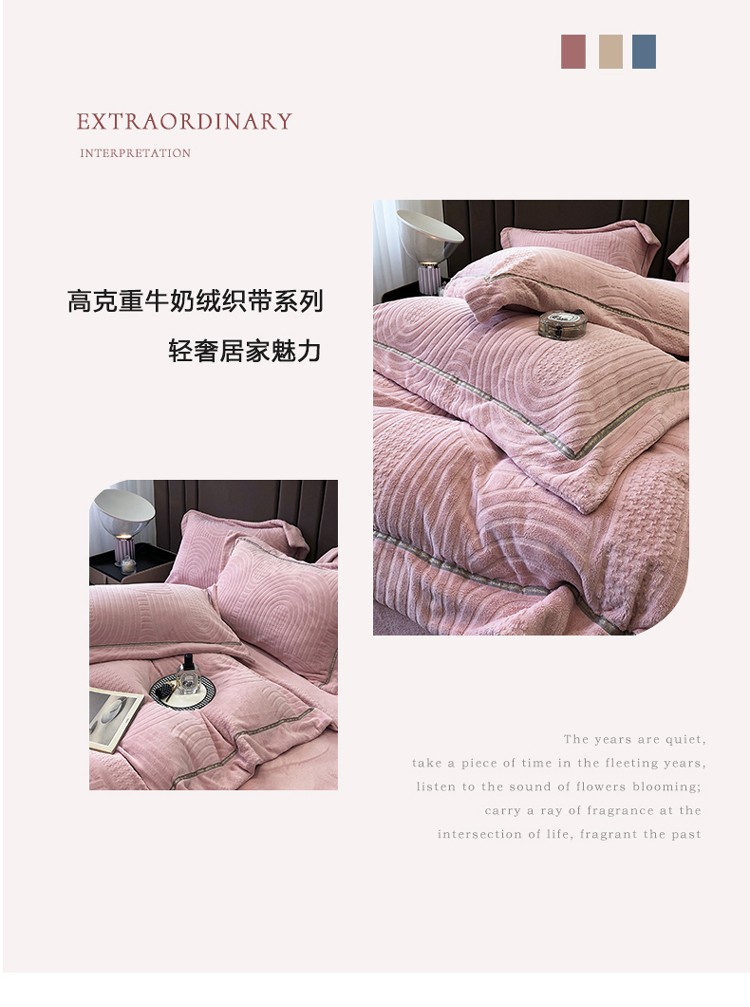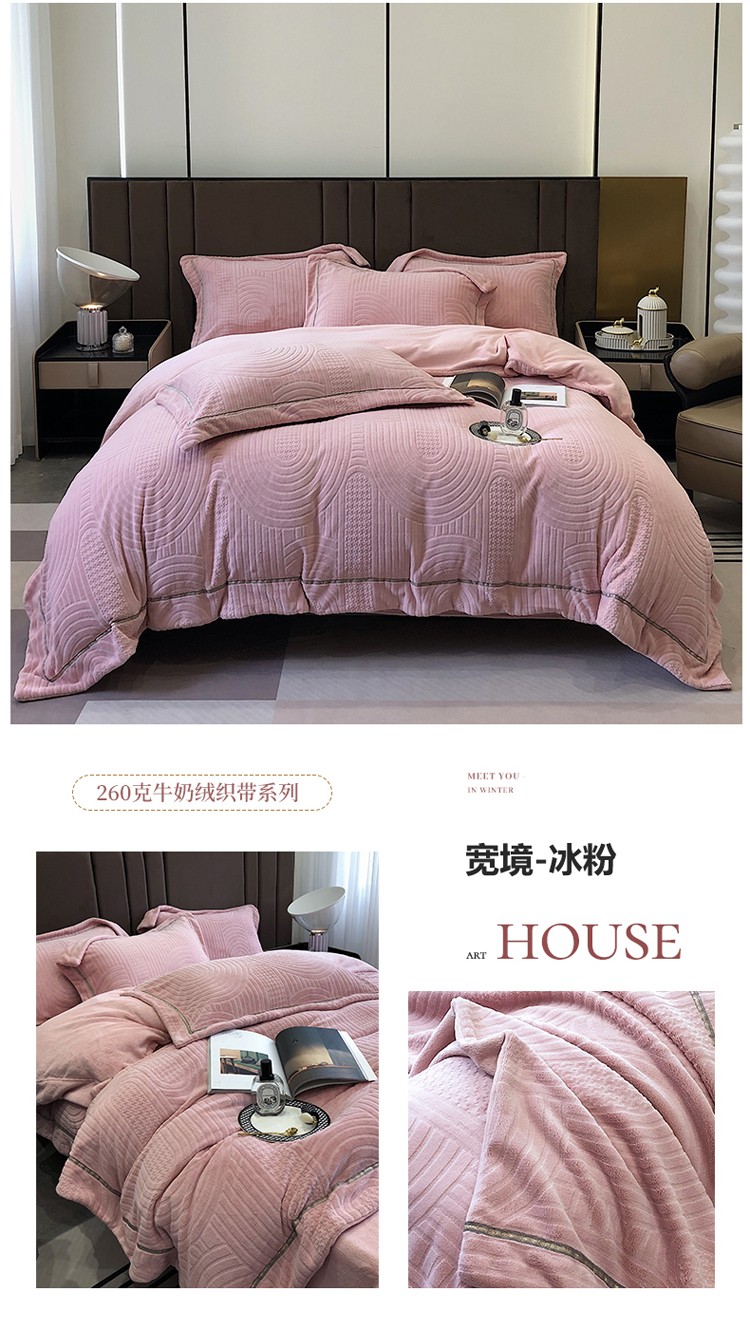 宜代光年 新款260克全消光牛奶绒织带系列四件套 宽境-冰粉