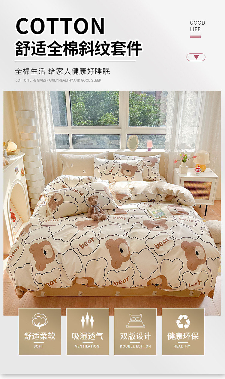 商品名称:金丝鸟 2023新款全棉小清新四件套 乖乖熊