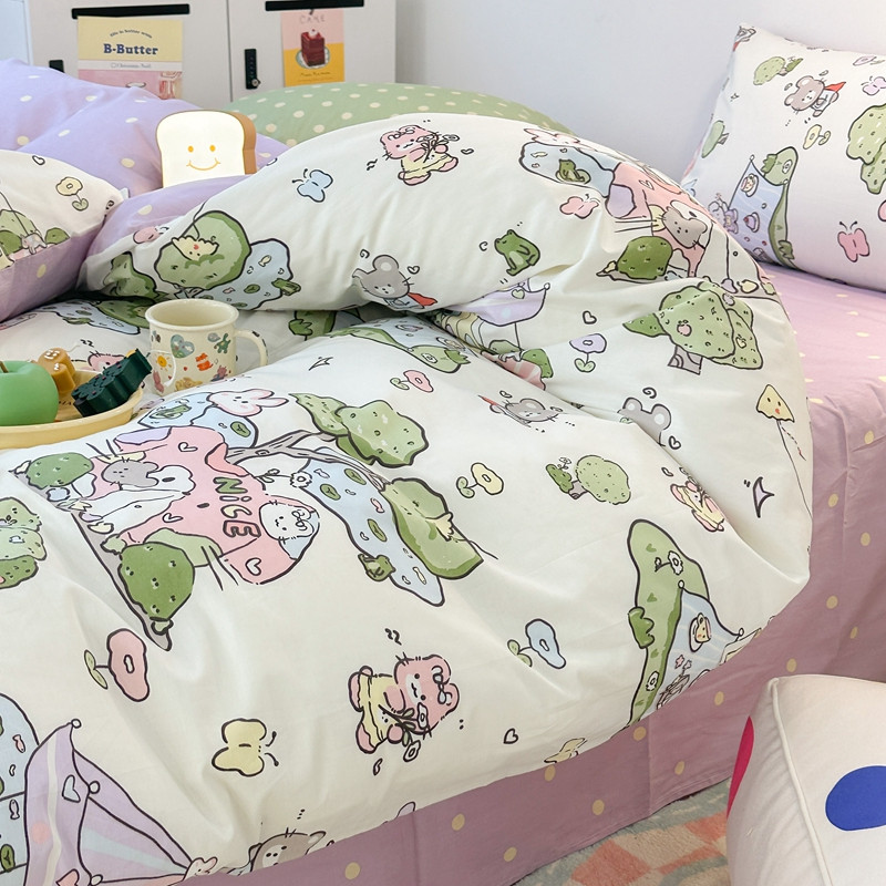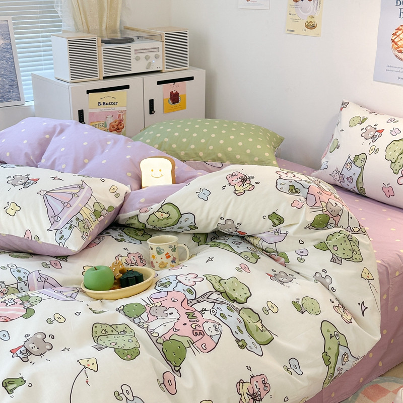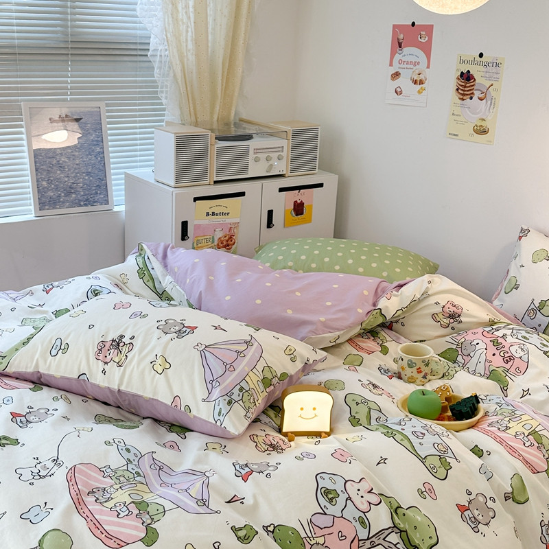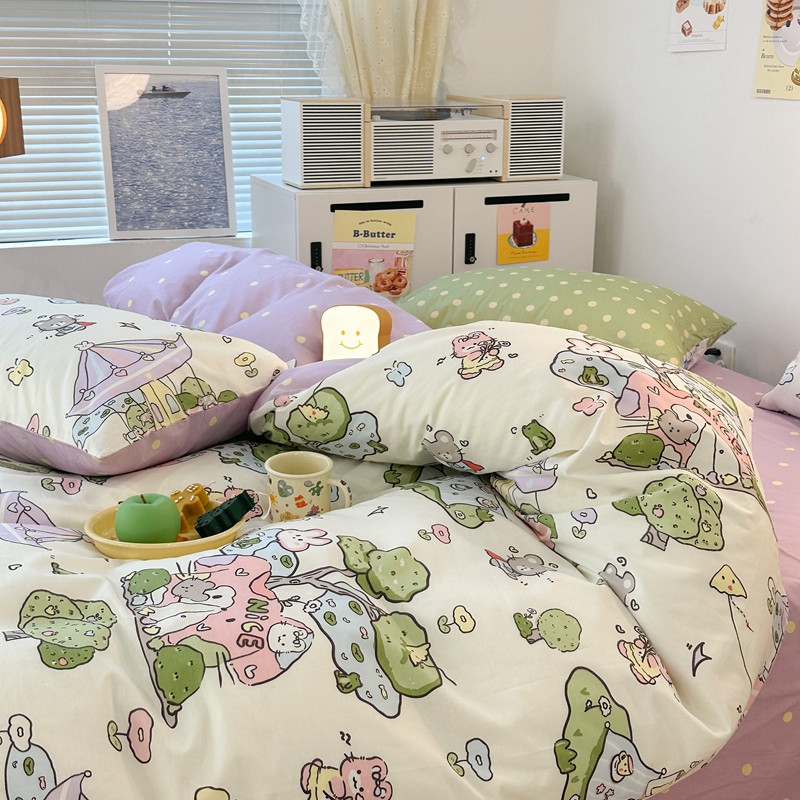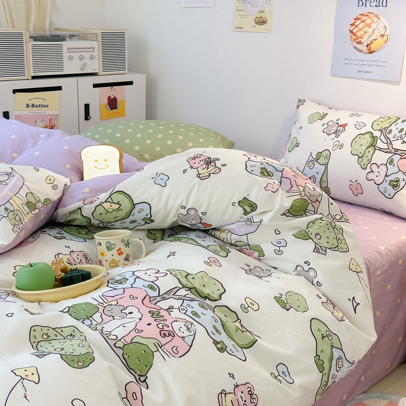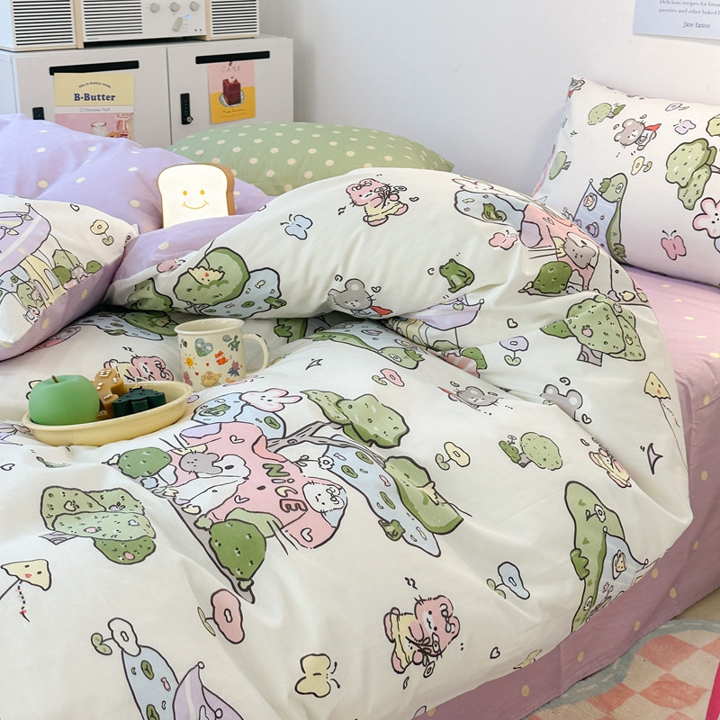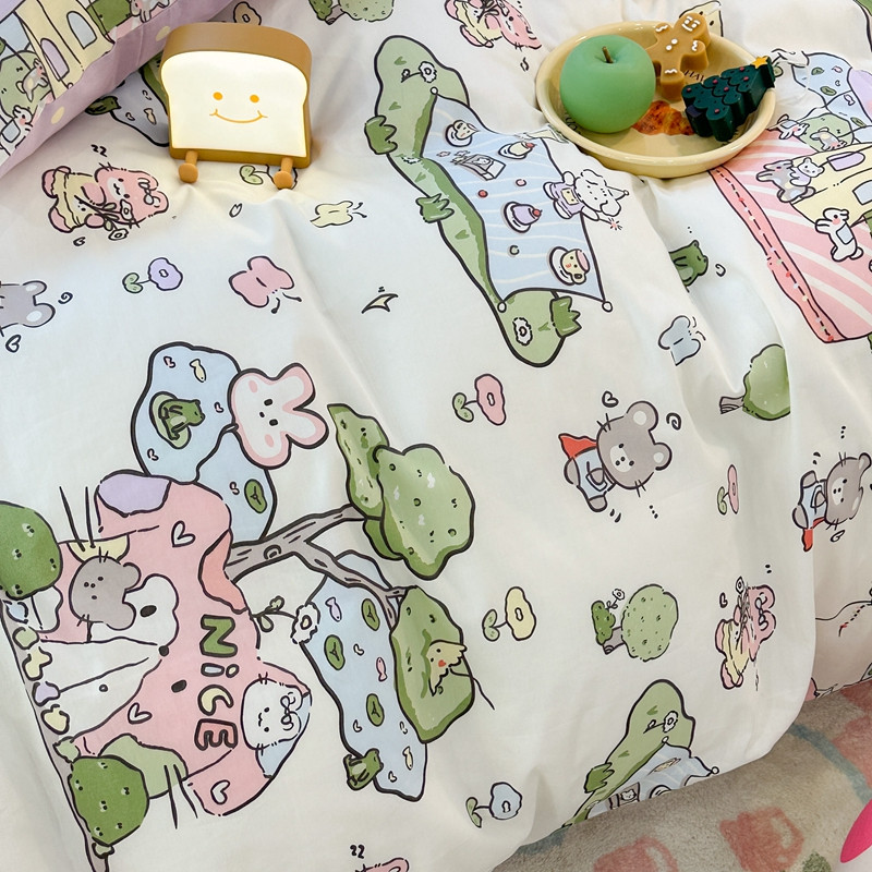 (总)昔可 2023新款学生季卡通普通款四件套,彩色气球熊,彩条恐龙,憨憨熊,花蜜小兔,蘑菇兔,圈圈草莓,蔬菜小兔,郁金香小萌狗
