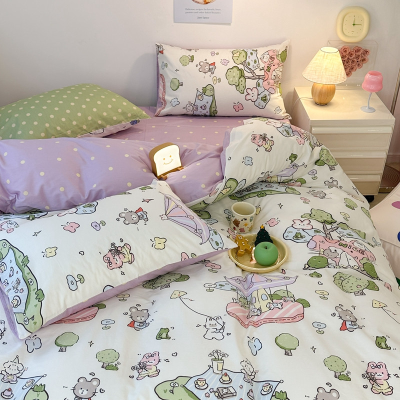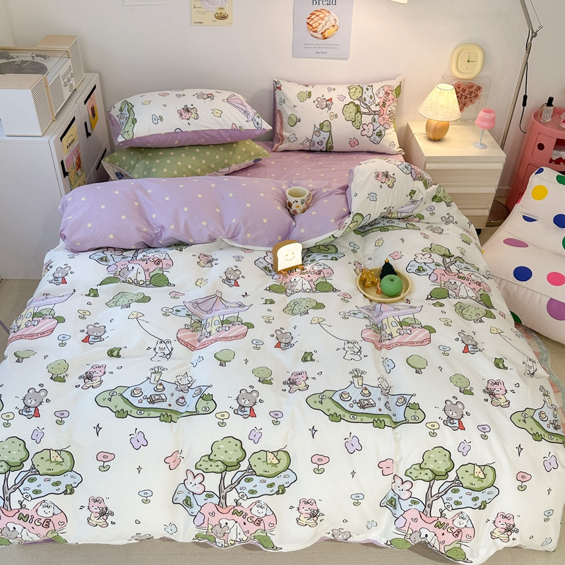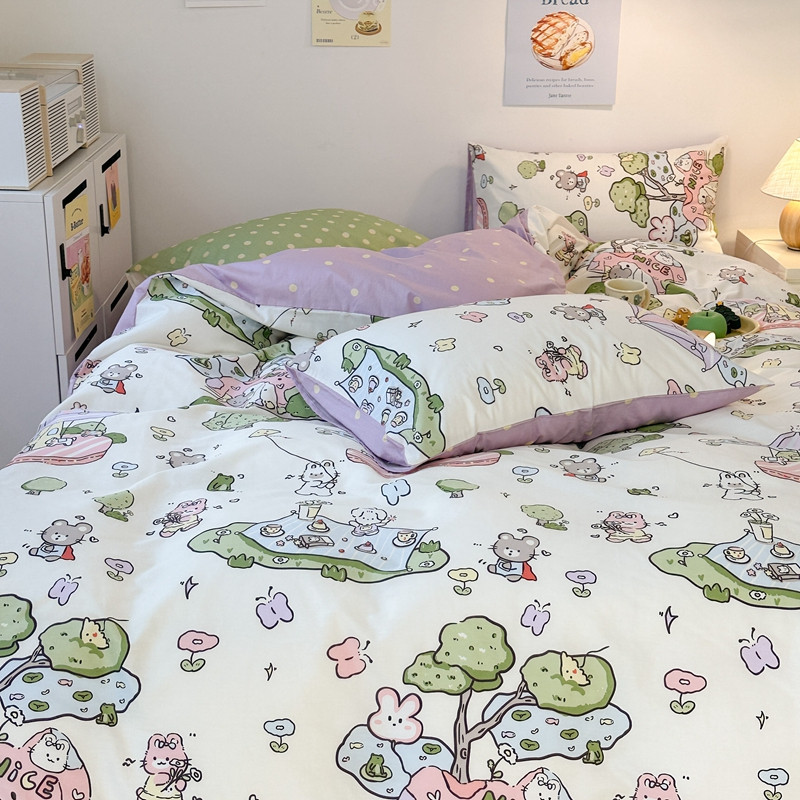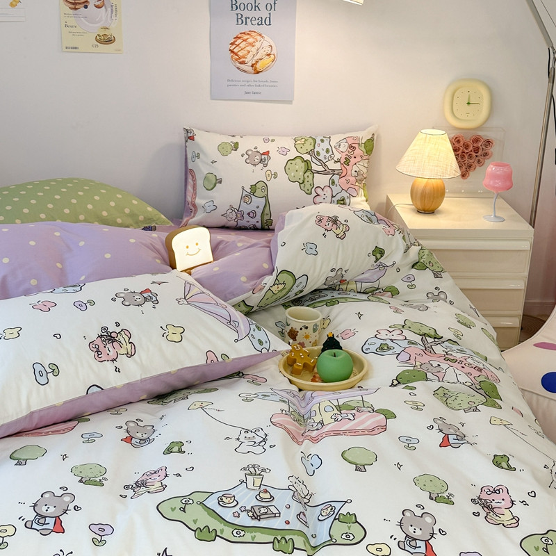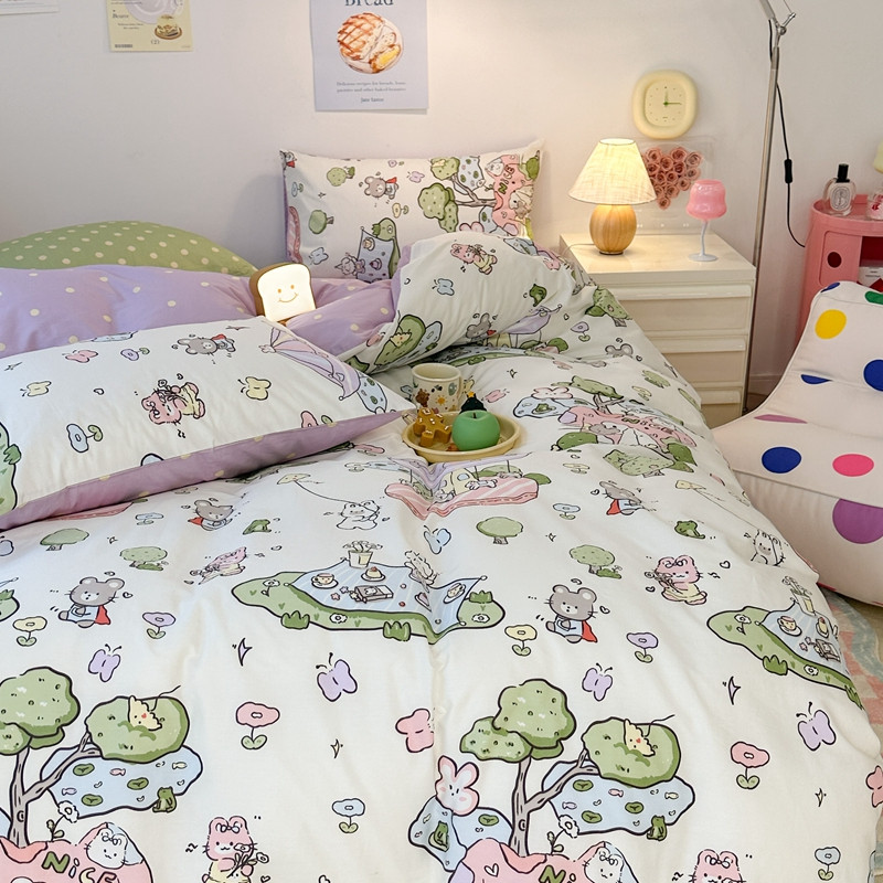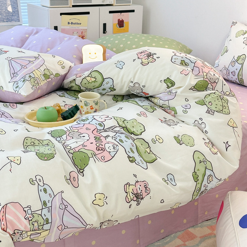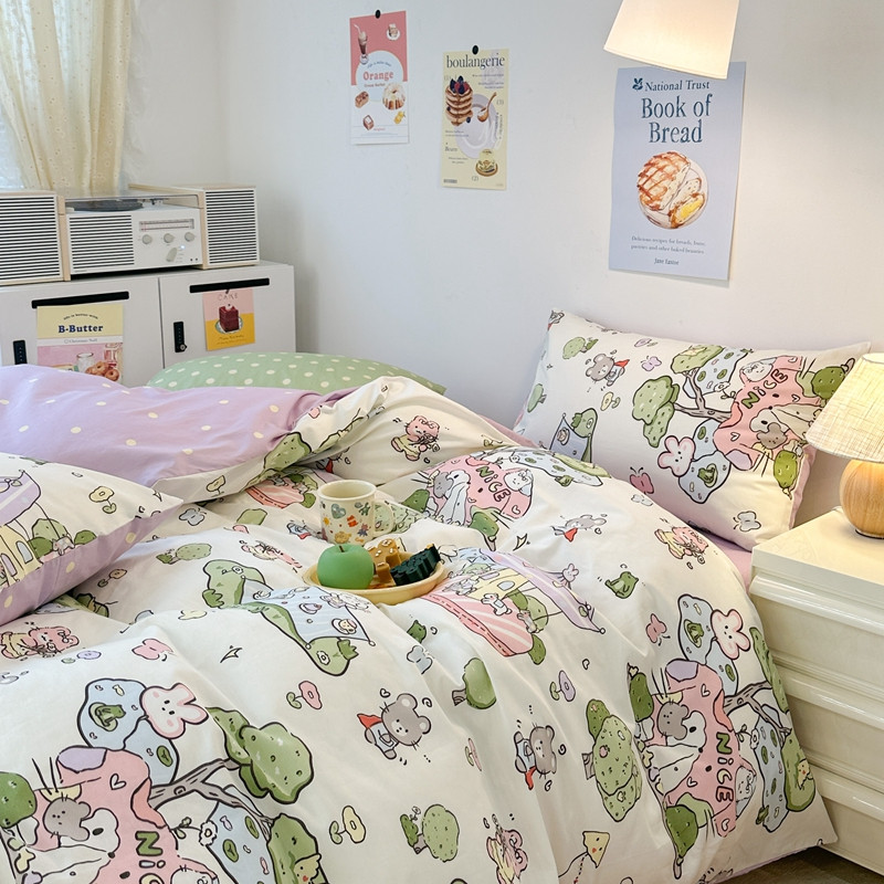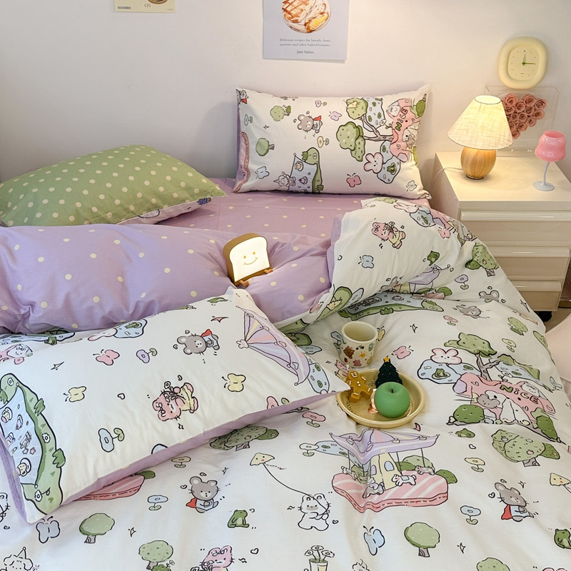 (总)昔可 2023新款学生季卡通普通款四件套,彩色气球熊,彩条恐龙,憨憨熊,花蜜小兔,蘑菇兔,圈圈草莓,蔬菜小兔,郁金香小萌狗