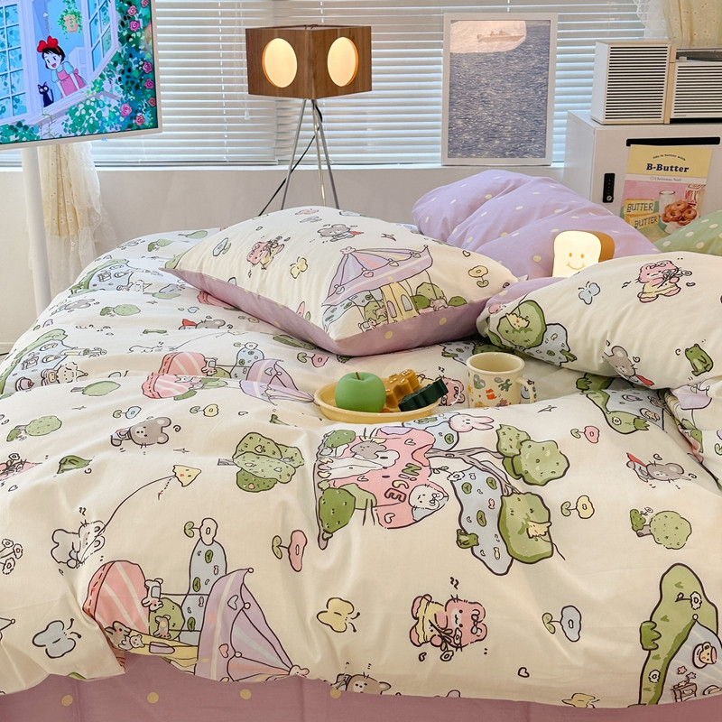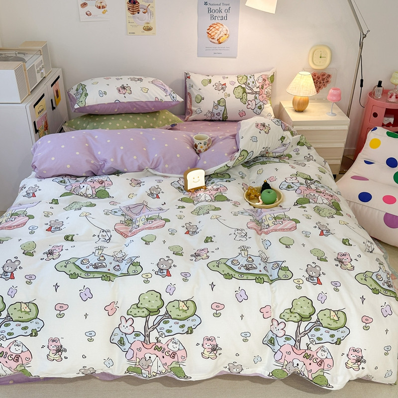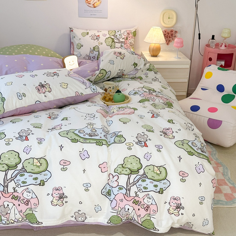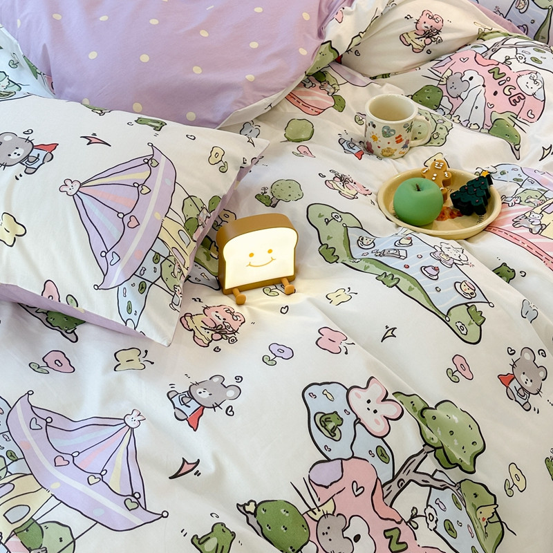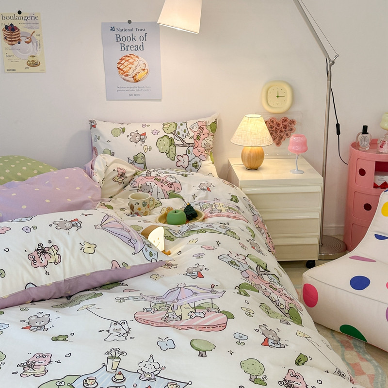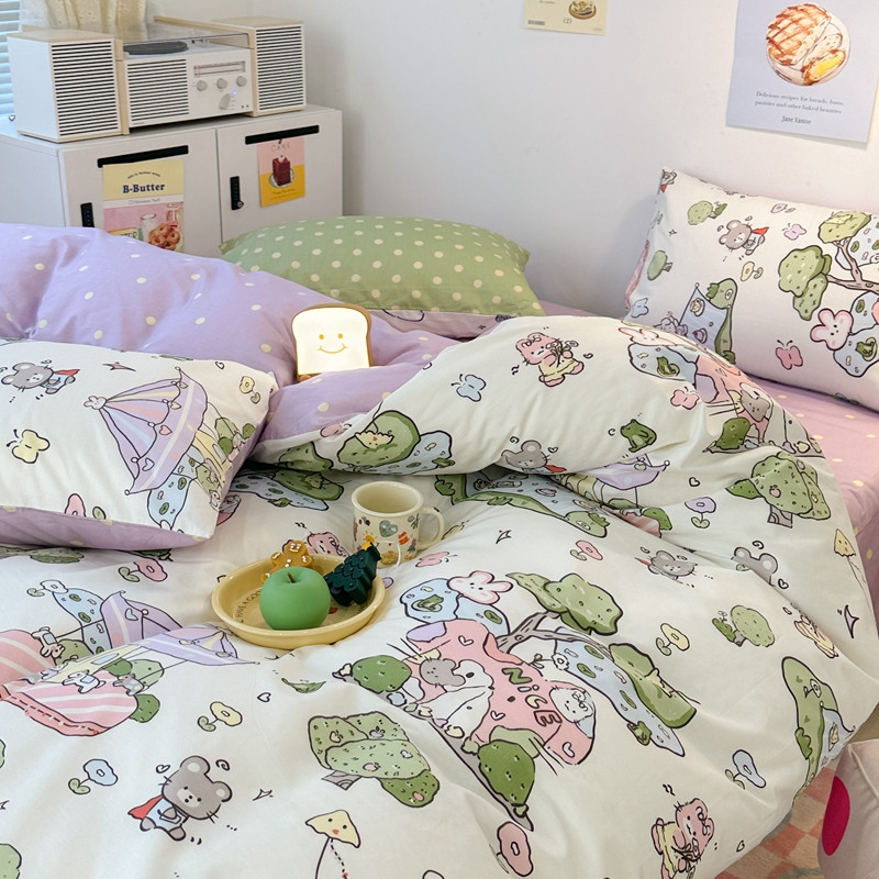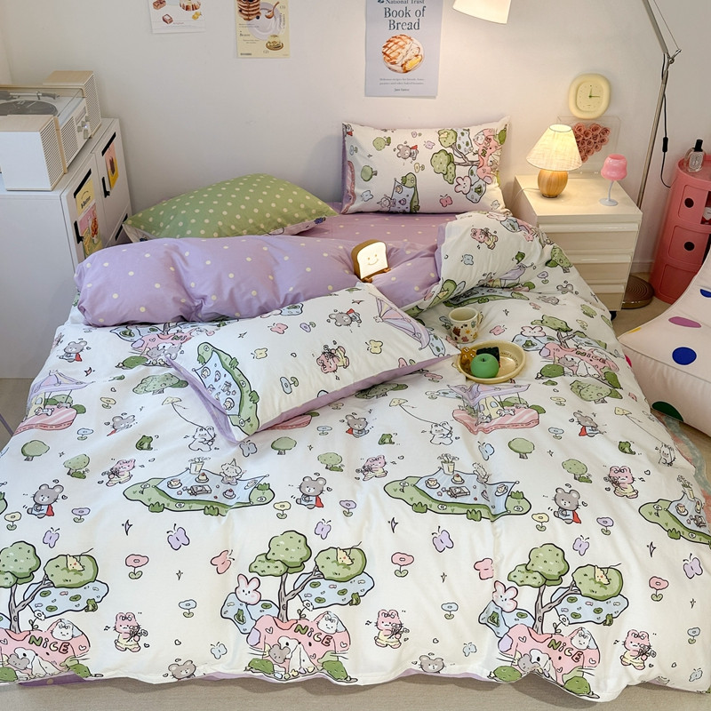 (总)昔可 2023新款学生季卡通普通款四件套,彩色气球熊,彩条恐龙,憨憨熊,花蜜小兔,蘑菇兔,圈圈草莓,蔬菜小兔,郁金香小萌狗