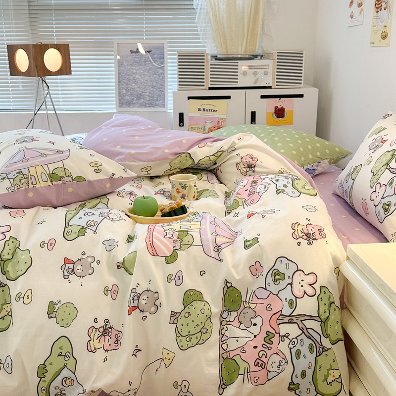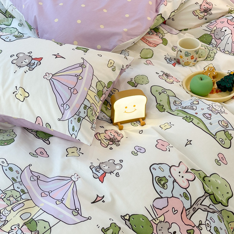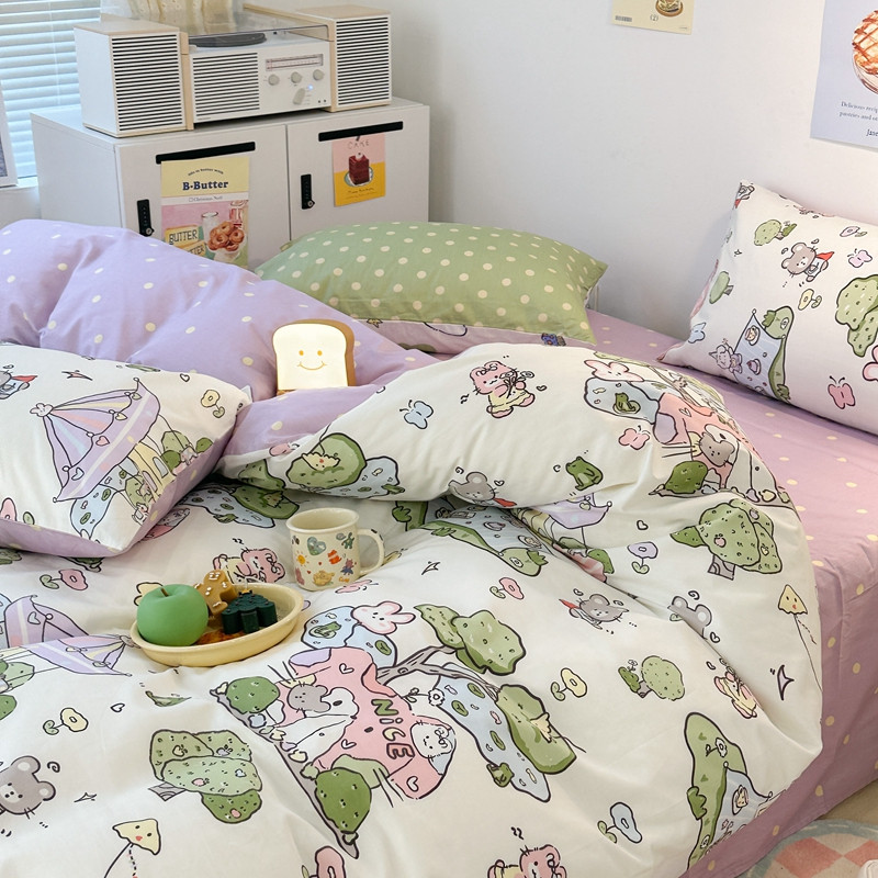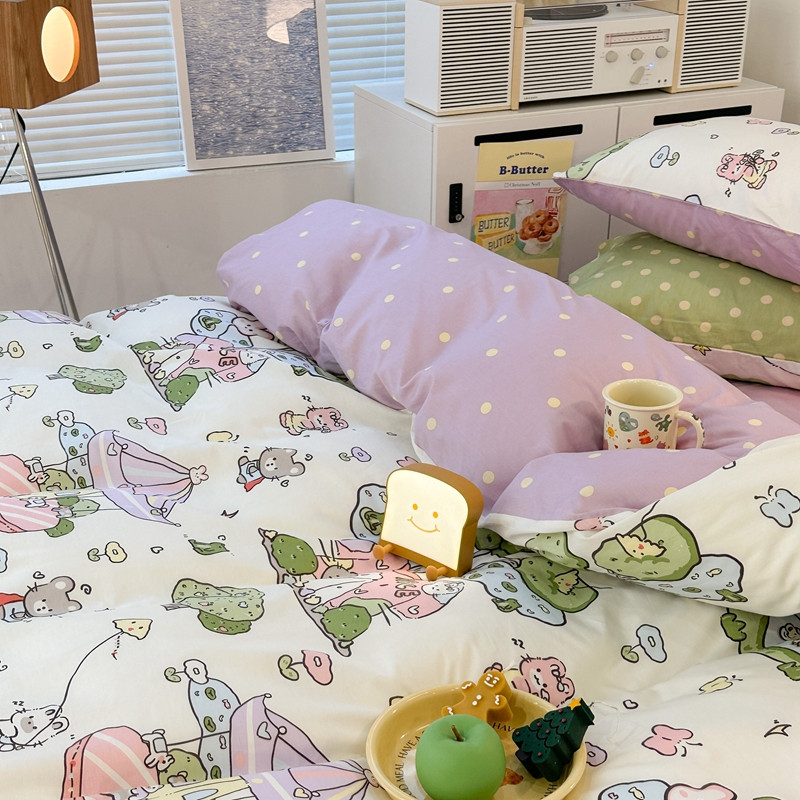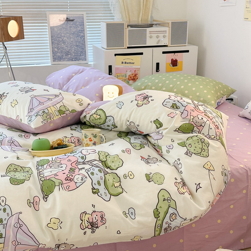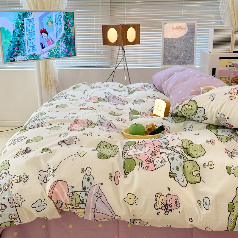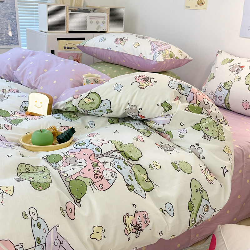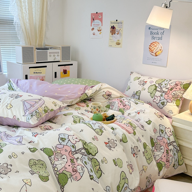 (总)昔可 2023新款学生季卡通普通款四件套,彩色气球熊,彩条恐龙,憨憨熊,花蜜小兔,蘑菇兔,圈圈草莓,蔬菜小兔,郁金香小萌狗