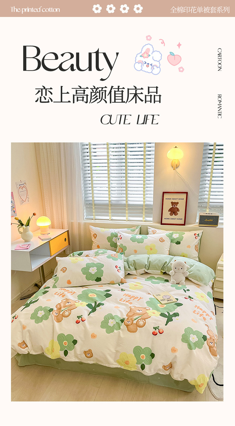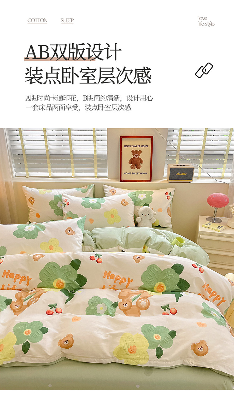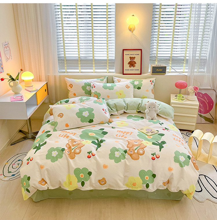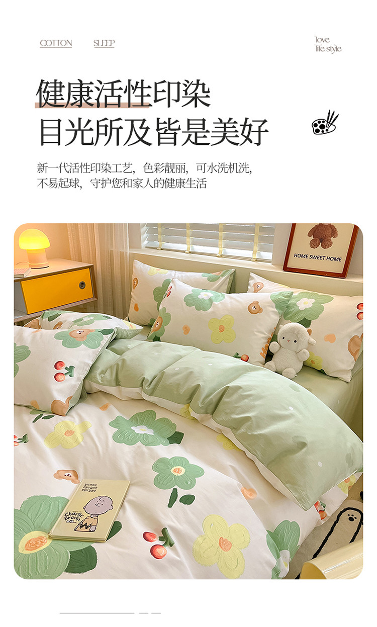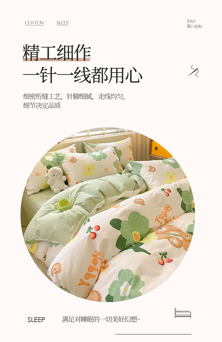 (总)蓝邻家纺 2024新款小清新印花全棉四件套学生宿舍三件套,茶园兔,风翩,机灵兔熊,可妮露,藤蔓兔,筱薇