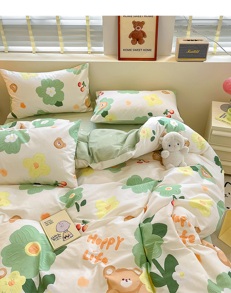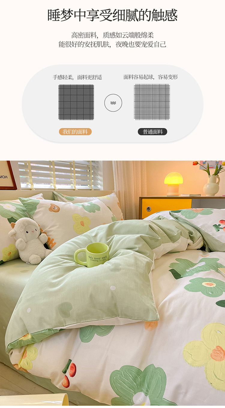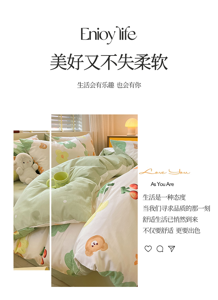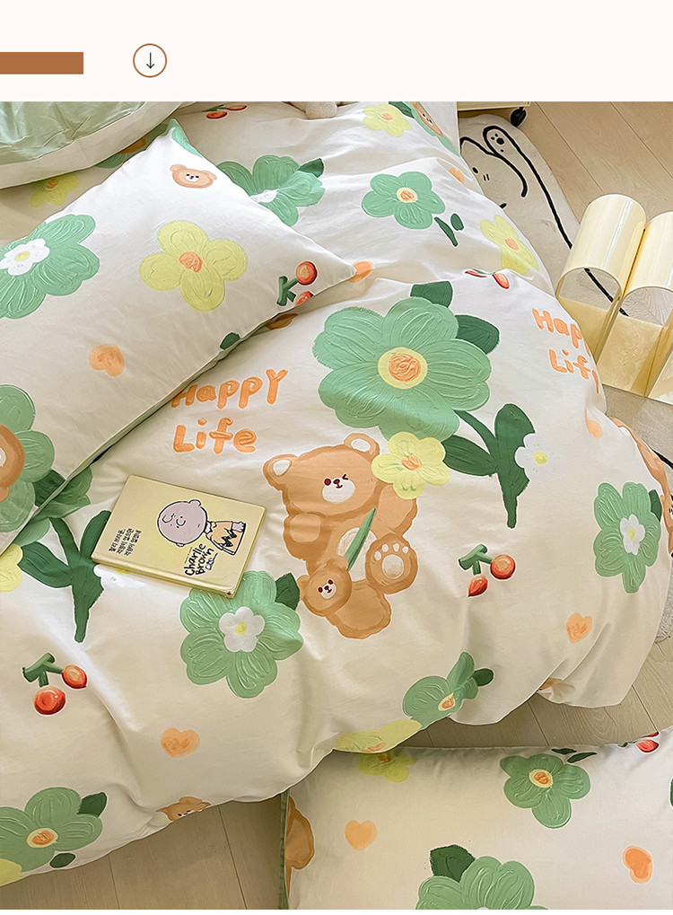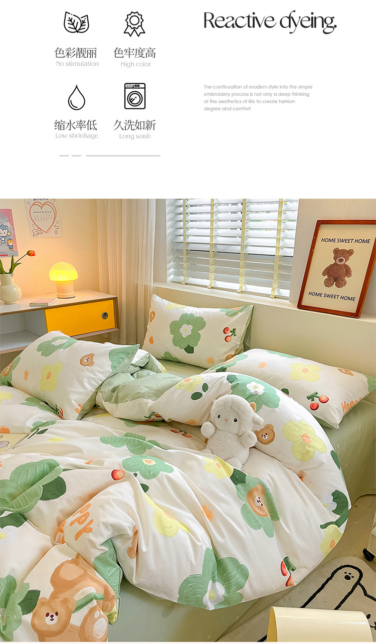 (总)蓝邻家纺 2024新款小清新印花全棉四件套学生宿舍三件套,茶园兔,风翩,机灵兔熊,可妮露,藤蔓兔,筱薇