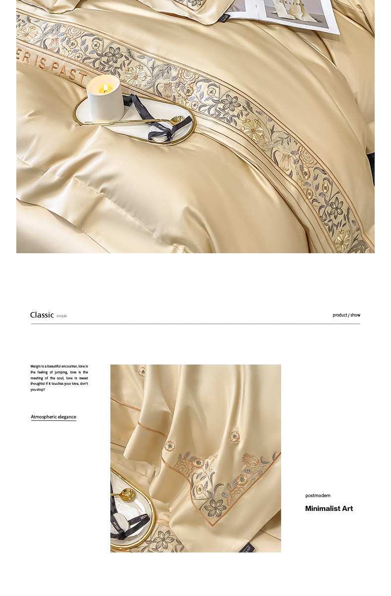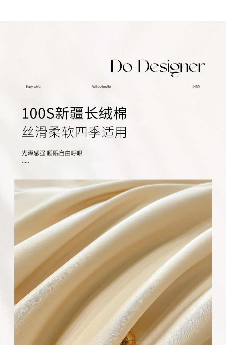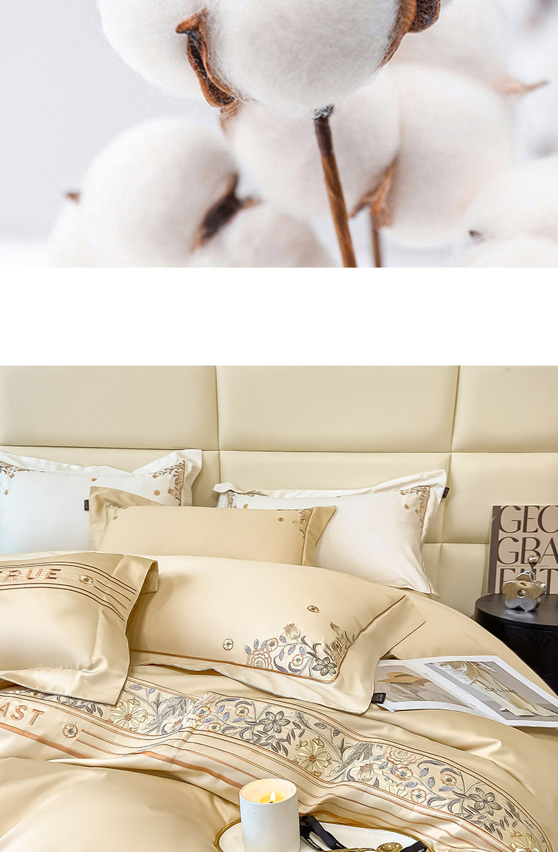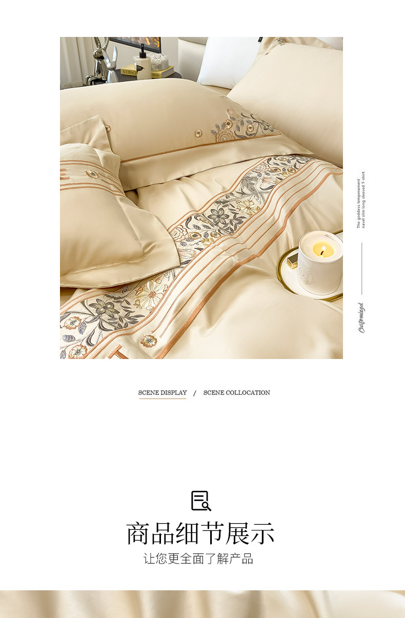 商品名称:100支长绒棉四件套纯色天丝棉刺绣床单被套新疆棉轻奢4件套 盘西-香槟金