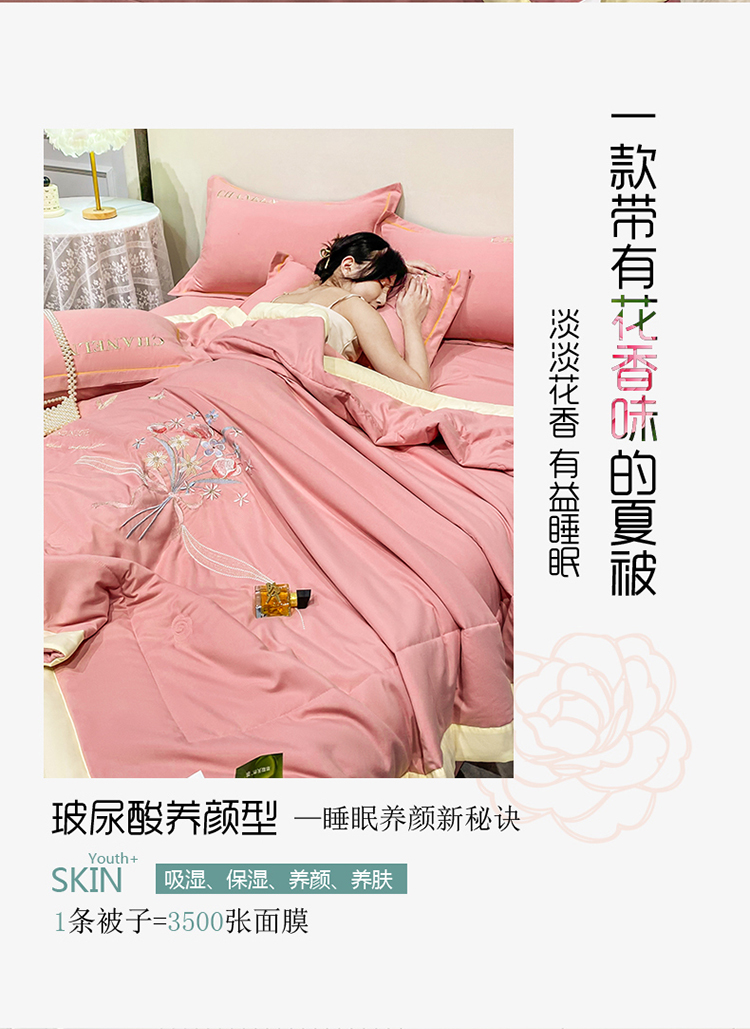 商品名称:漫布云 2023新款大版花卉刺绣花香夏被系列 花香迷人--粉玉