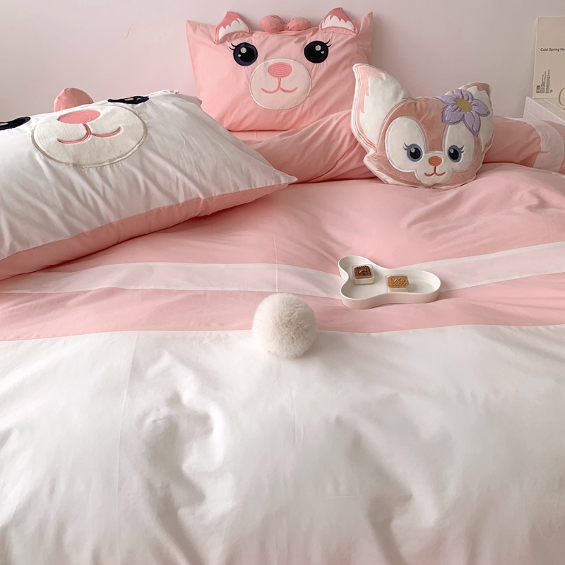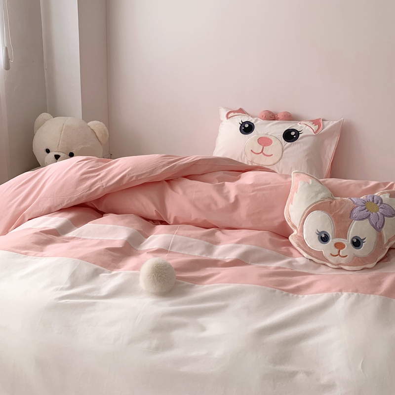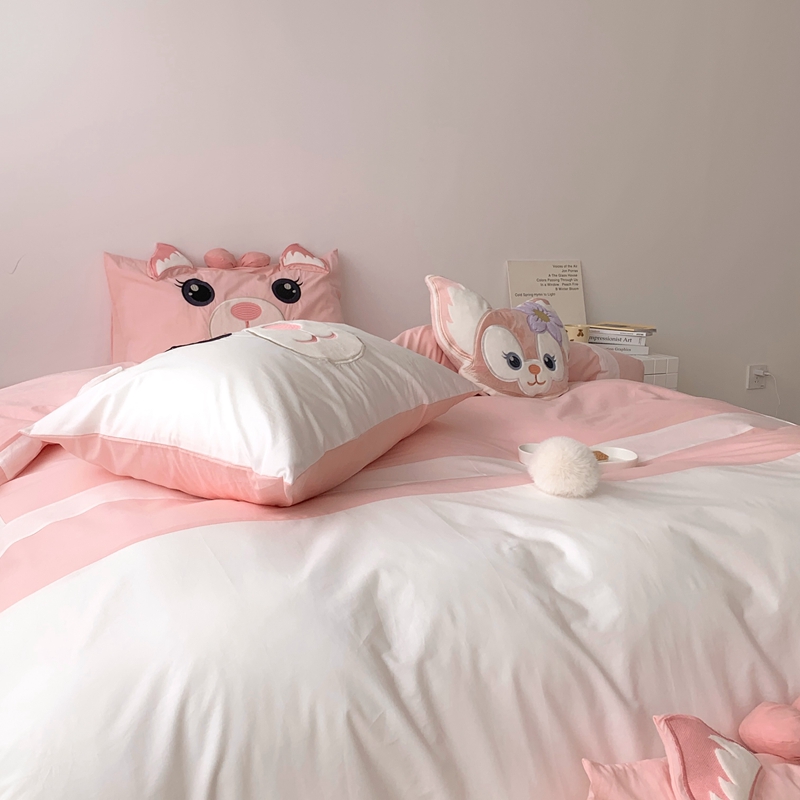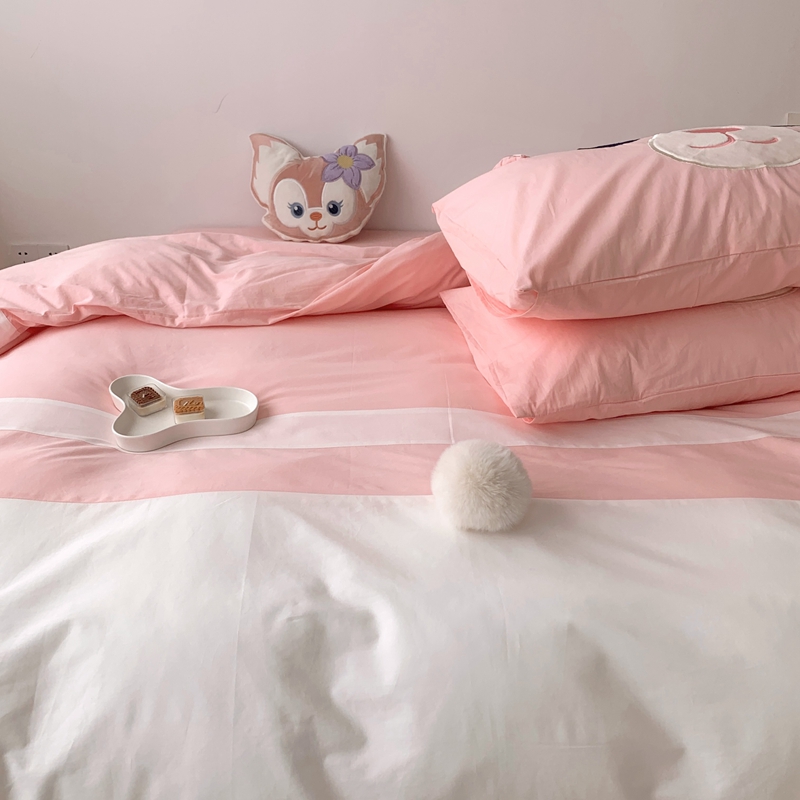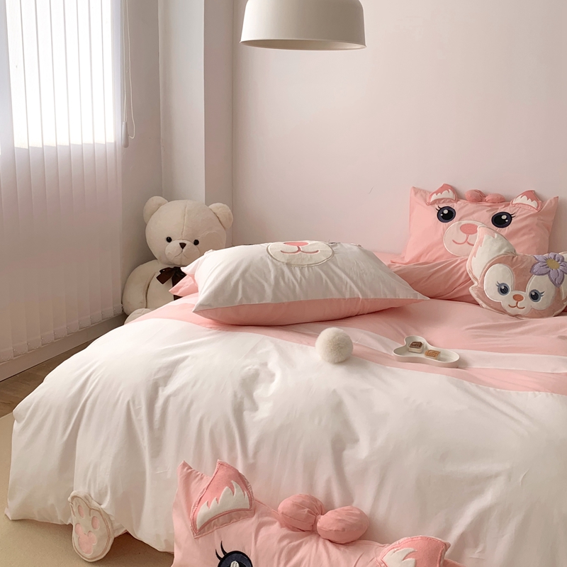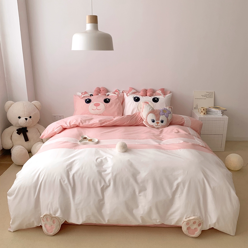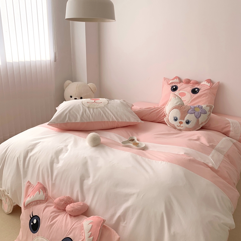 (总)朗莎 2024新款40S水洗棉四件套,爱心米奇,粉猪猪