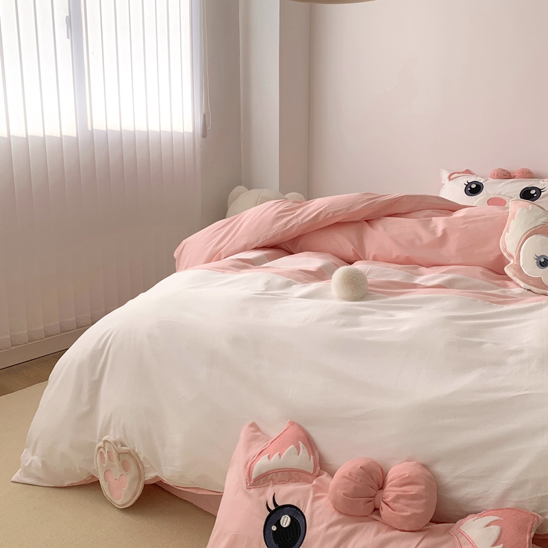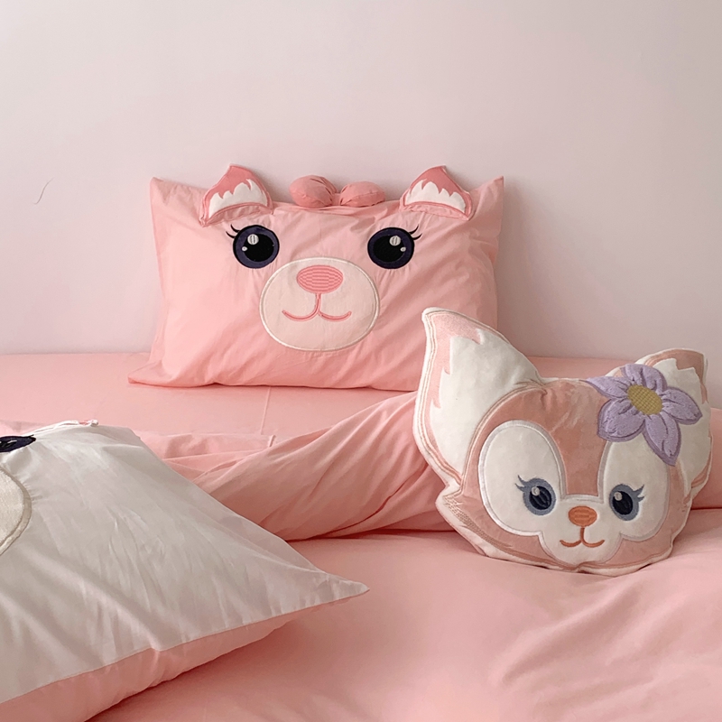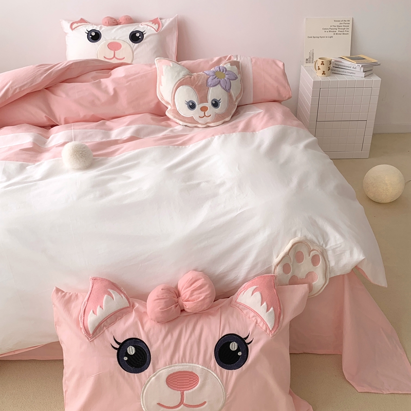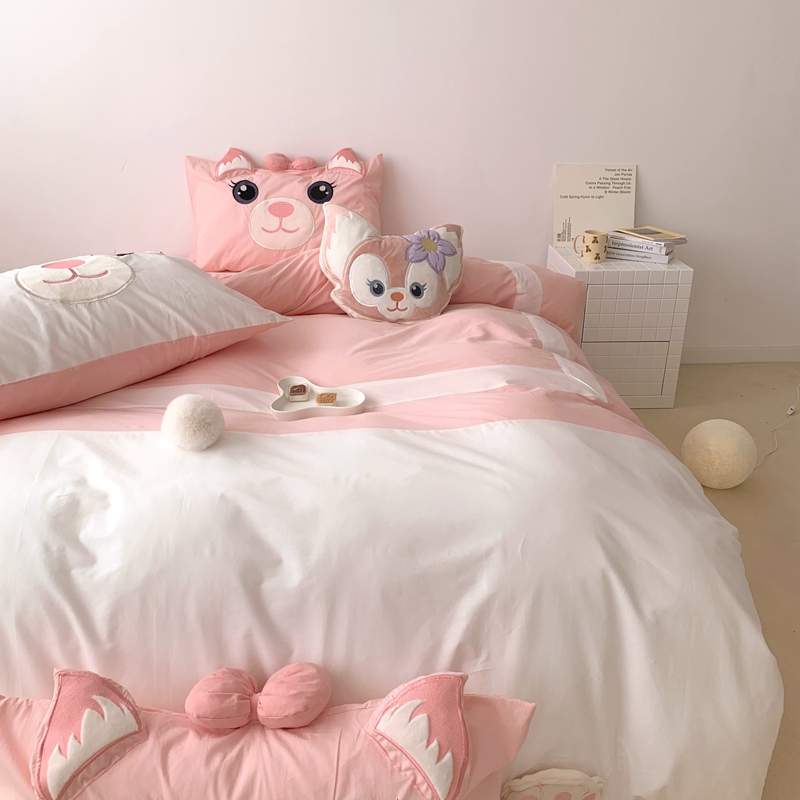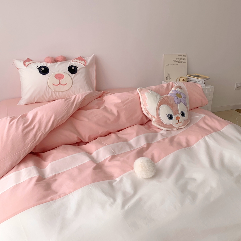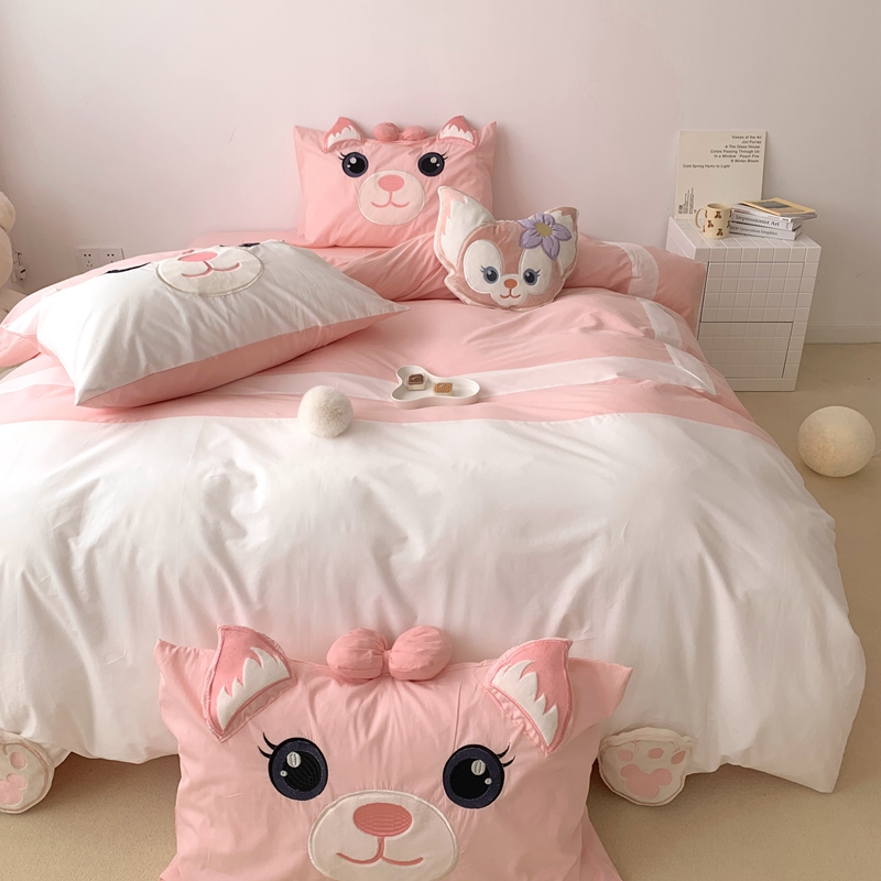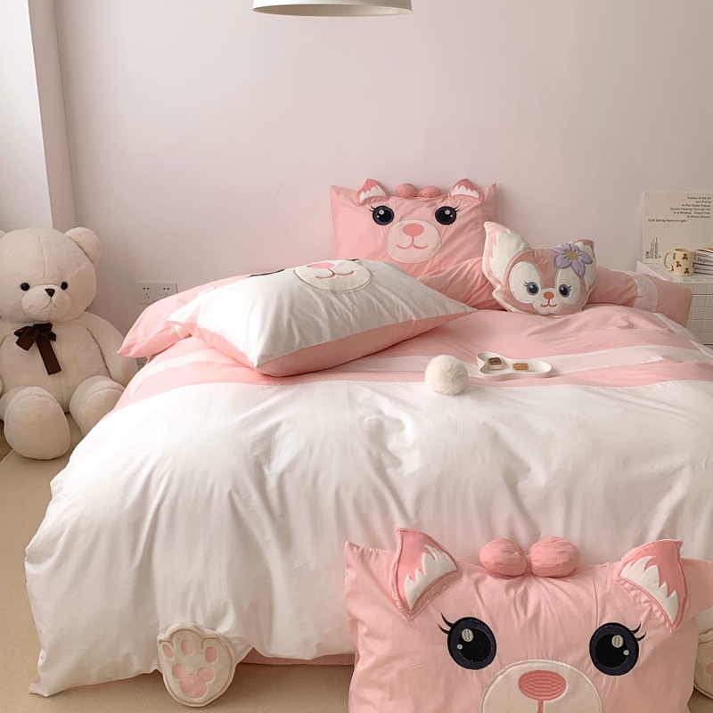 (总)朗莎 2024新款40S水洗棉四件套,爱心米奇,粉猪猪