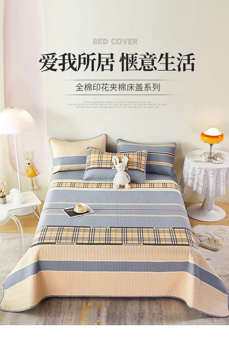 莎果 2024新款正面纯棉绗缝床盖 经典生活