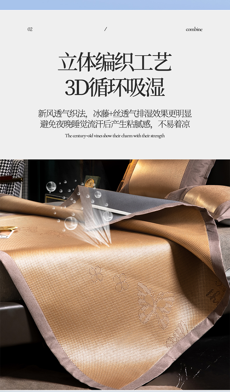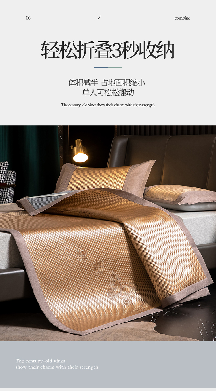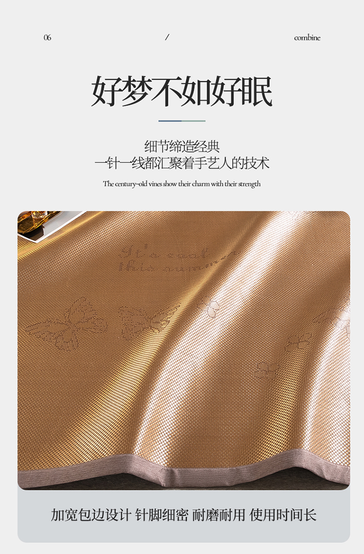 总伊被源2023新款女王款刺绣冰藤席1200D可机洗可折叠冰丝席-戴菲,戴菲 薄荷绿,戴菲 古铜咖,戴菲 香槟金,戴菲 月光银
