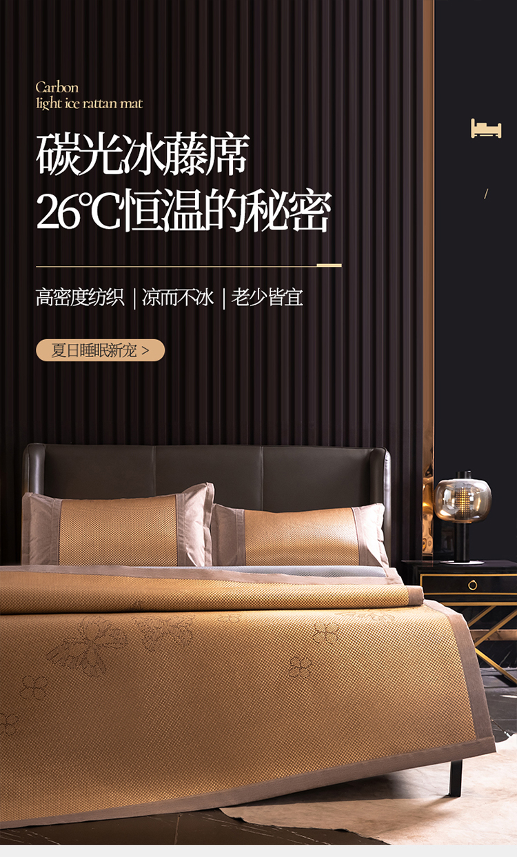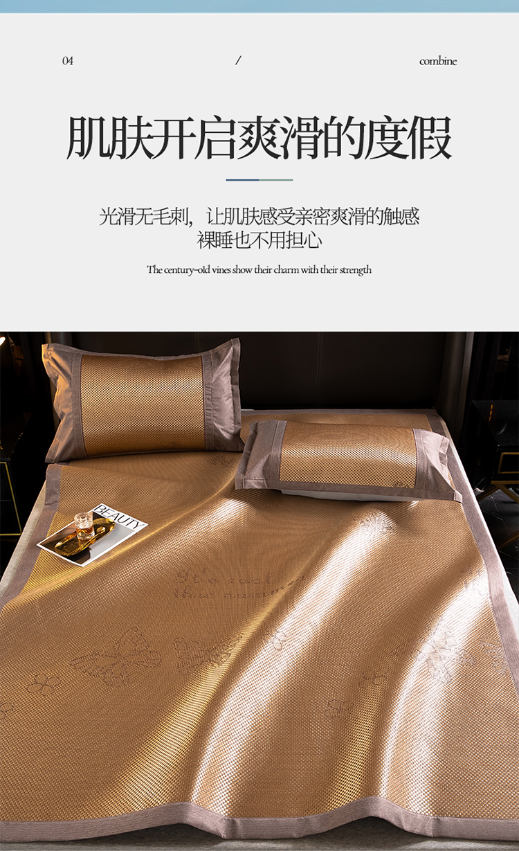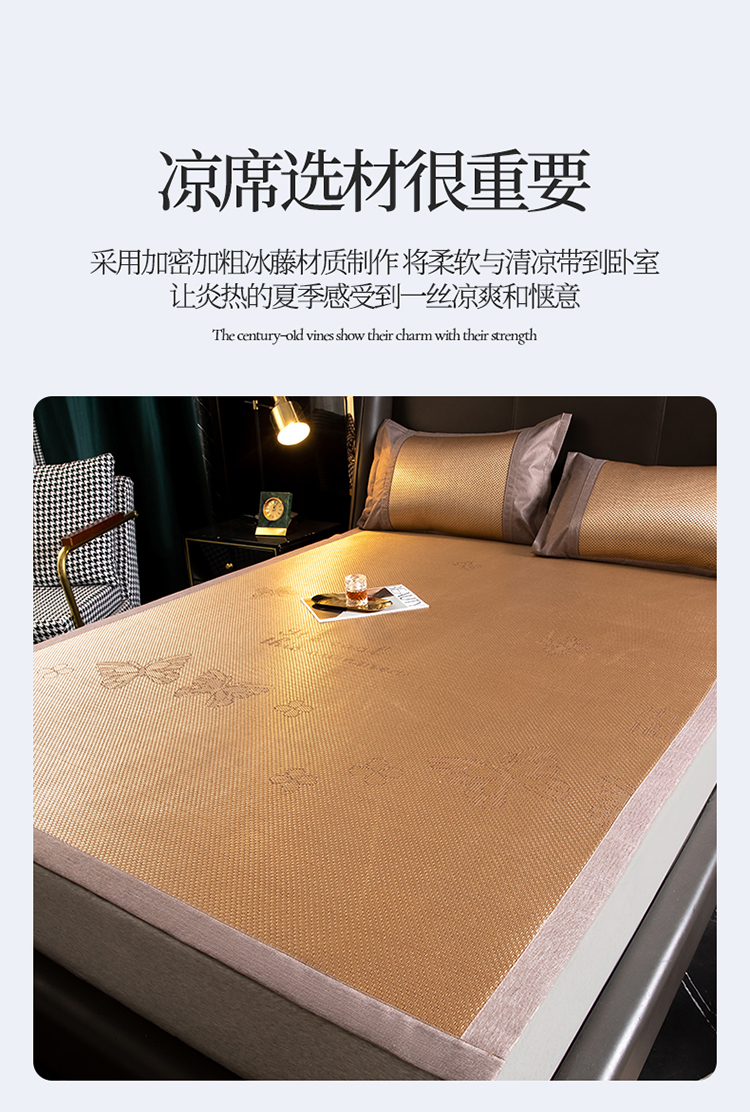 商品名称: 伊被源 2023新款高密度纺织碳光冰藤席 蝴蝶-金
