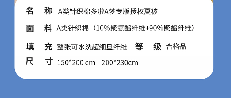 商品名称:亚龙2023新款A类针织棉多啦A梦专版授权夏被 云朵哆啦A梦
