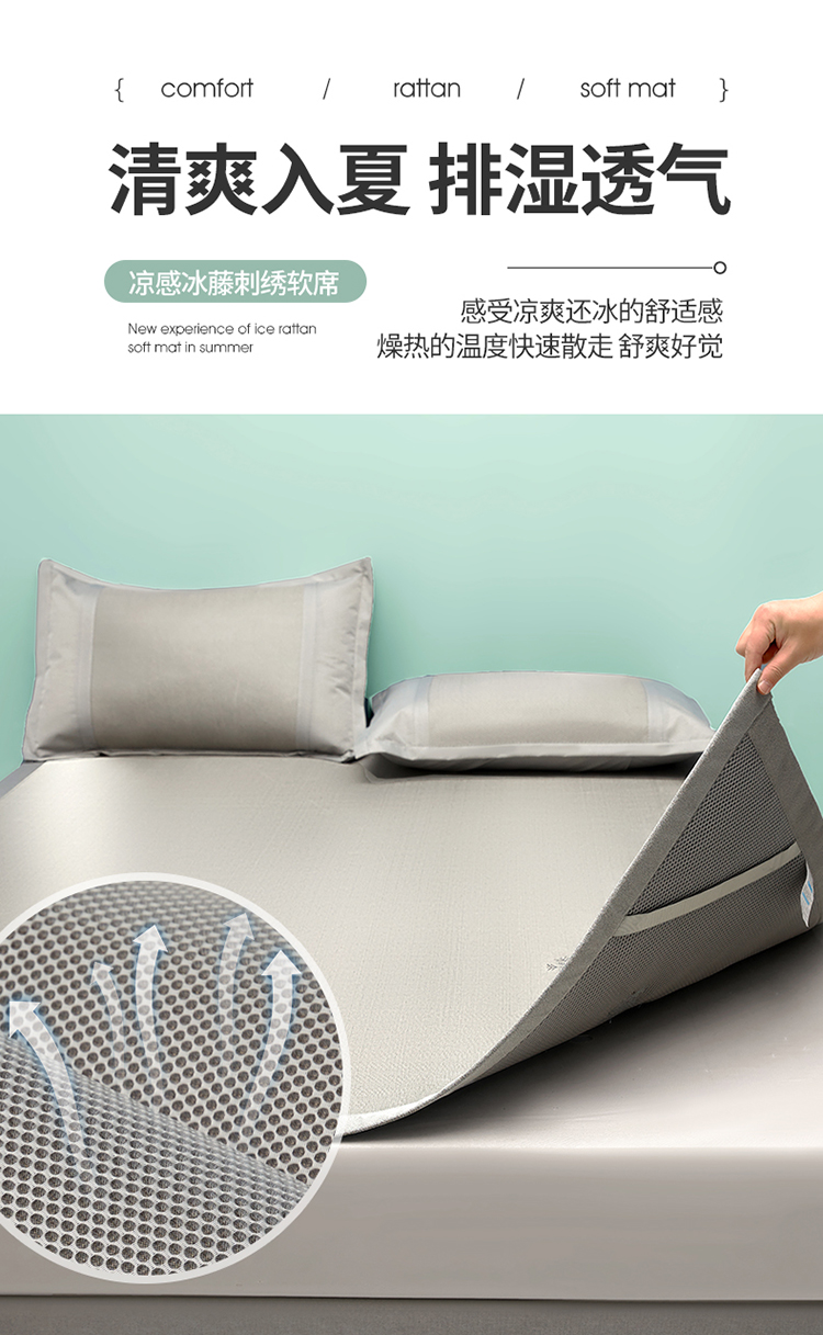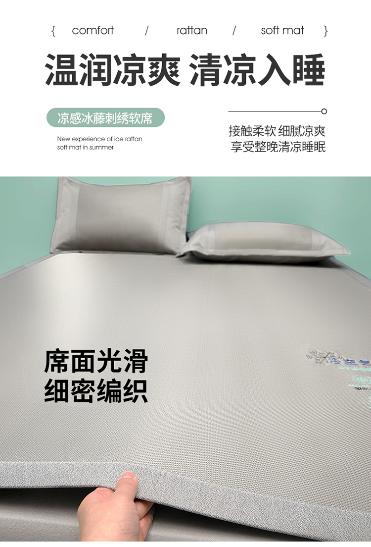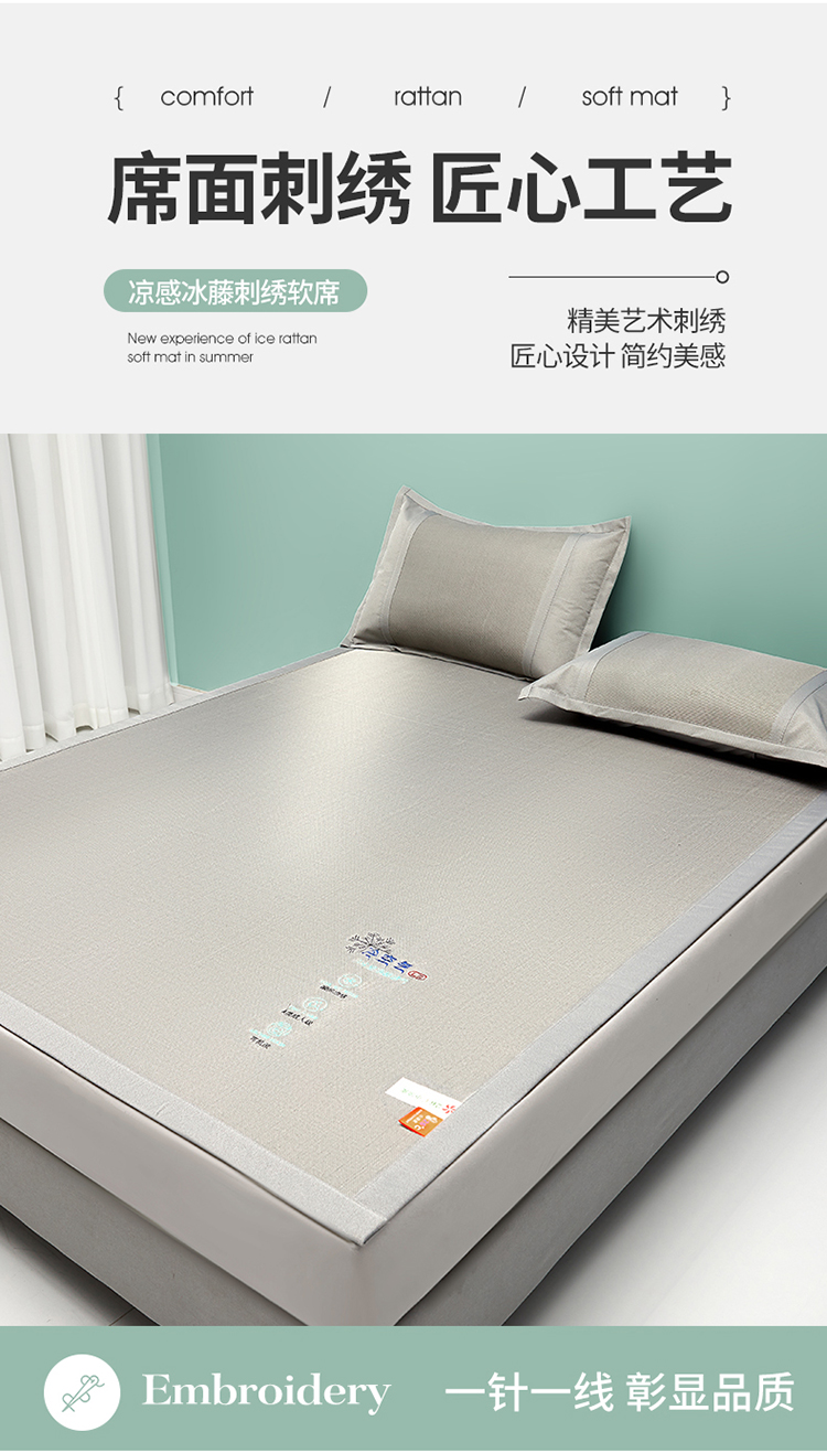 商品名称:2023新款凉感冰藤刺绣软席-冰镇席、酷爽席 酷爽席-浅灰