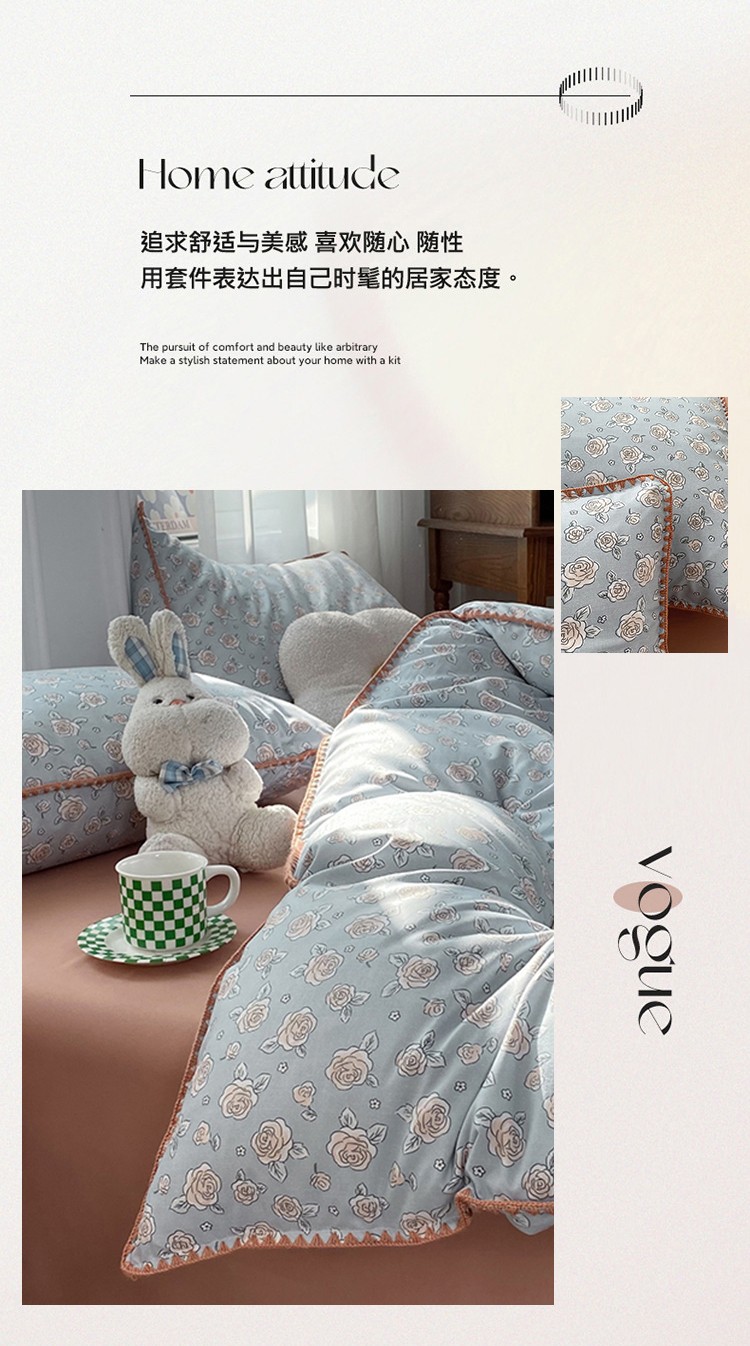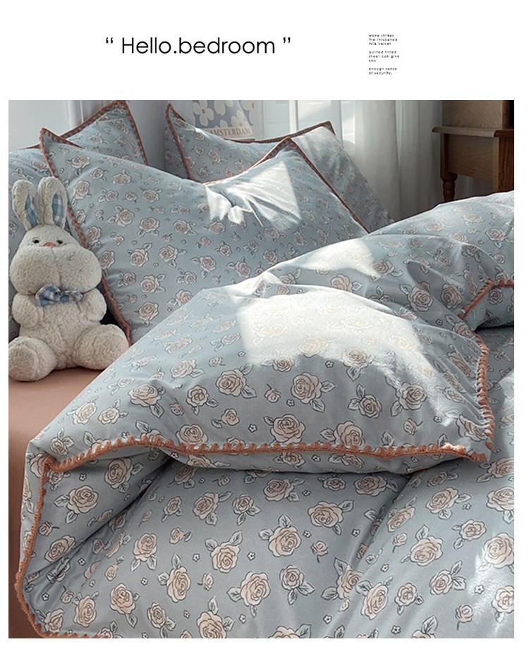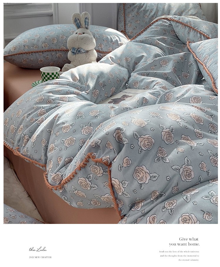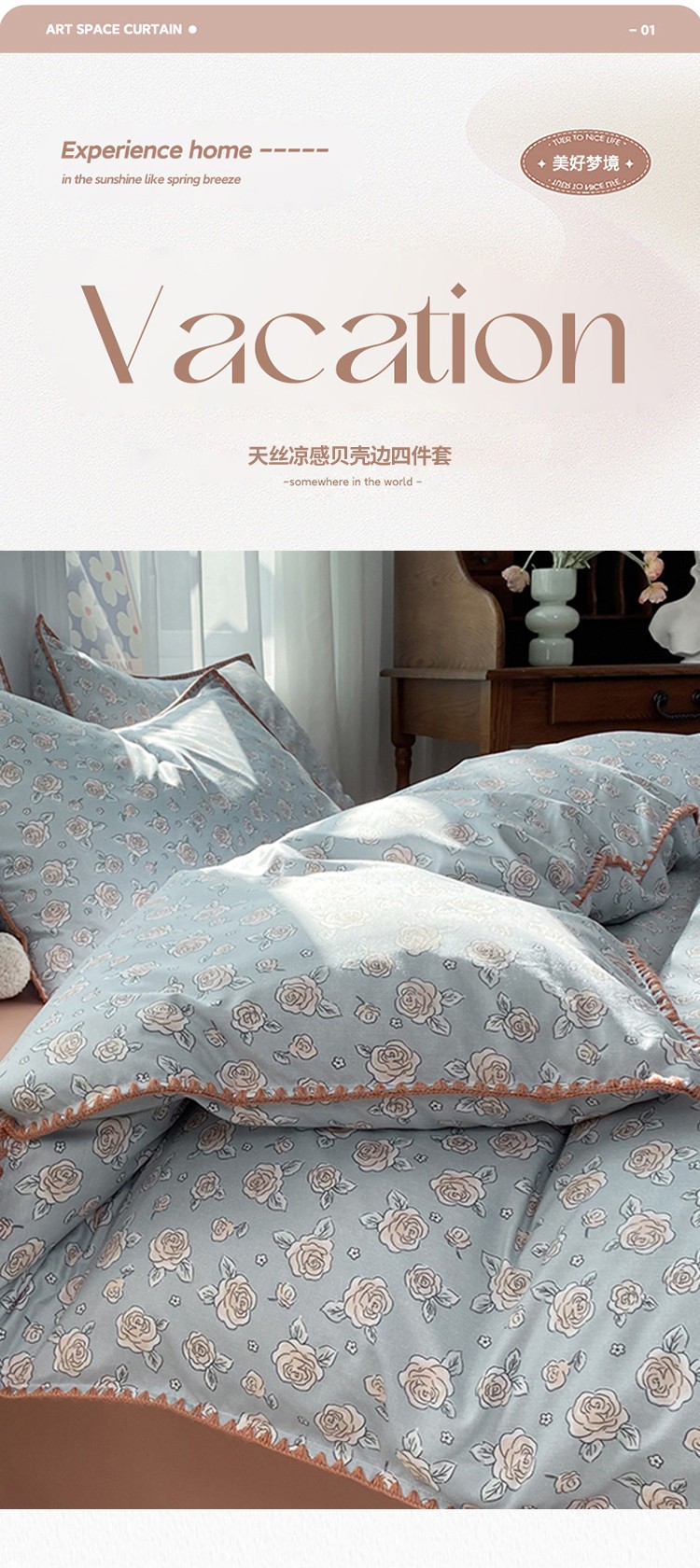 妖妖家纺 2023天丝凉感贝克边四件套 玫瑰之约