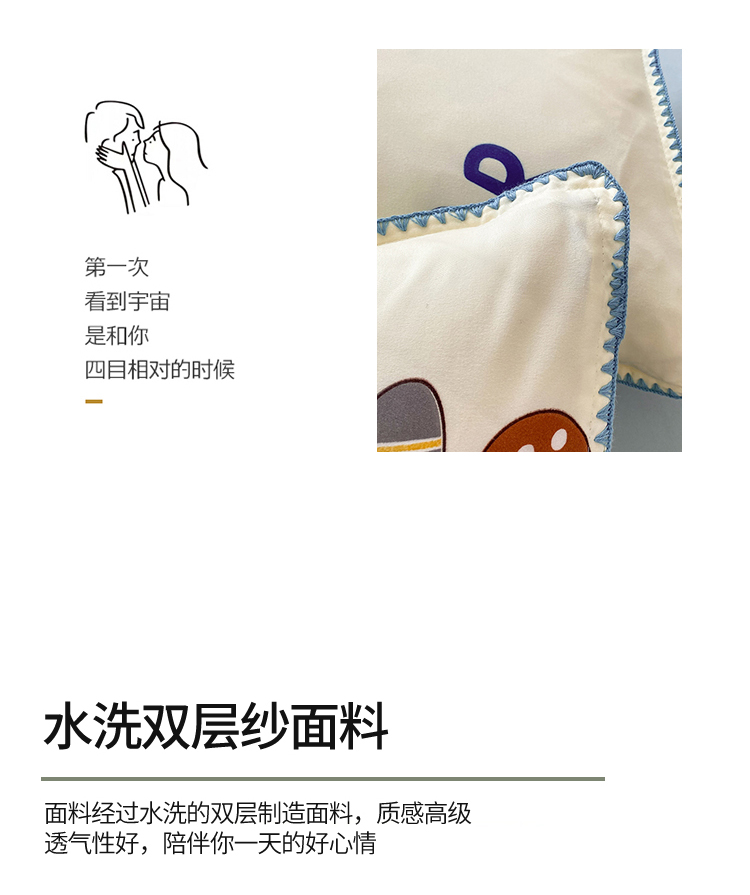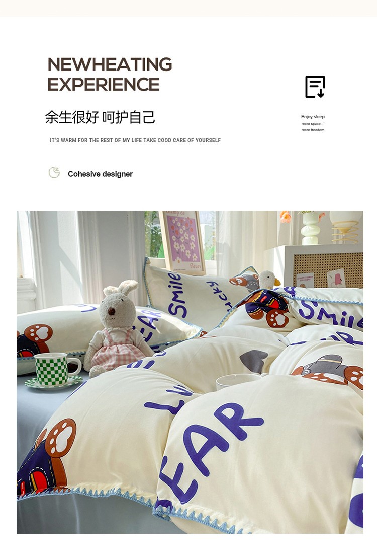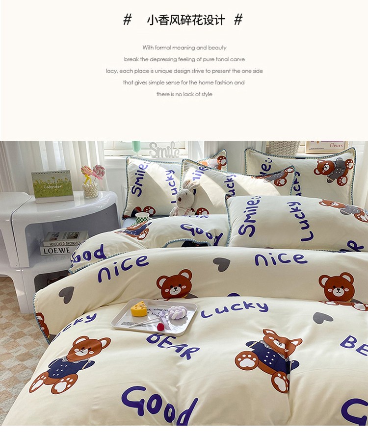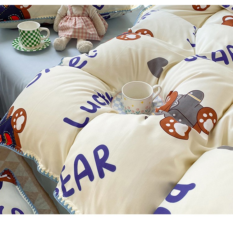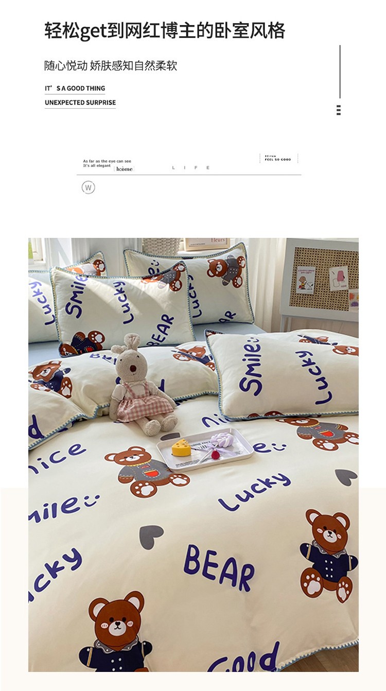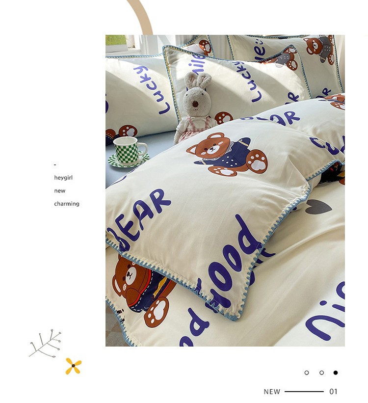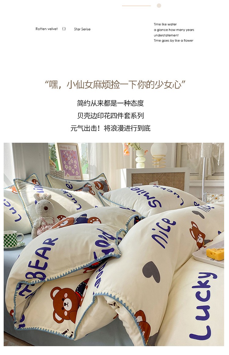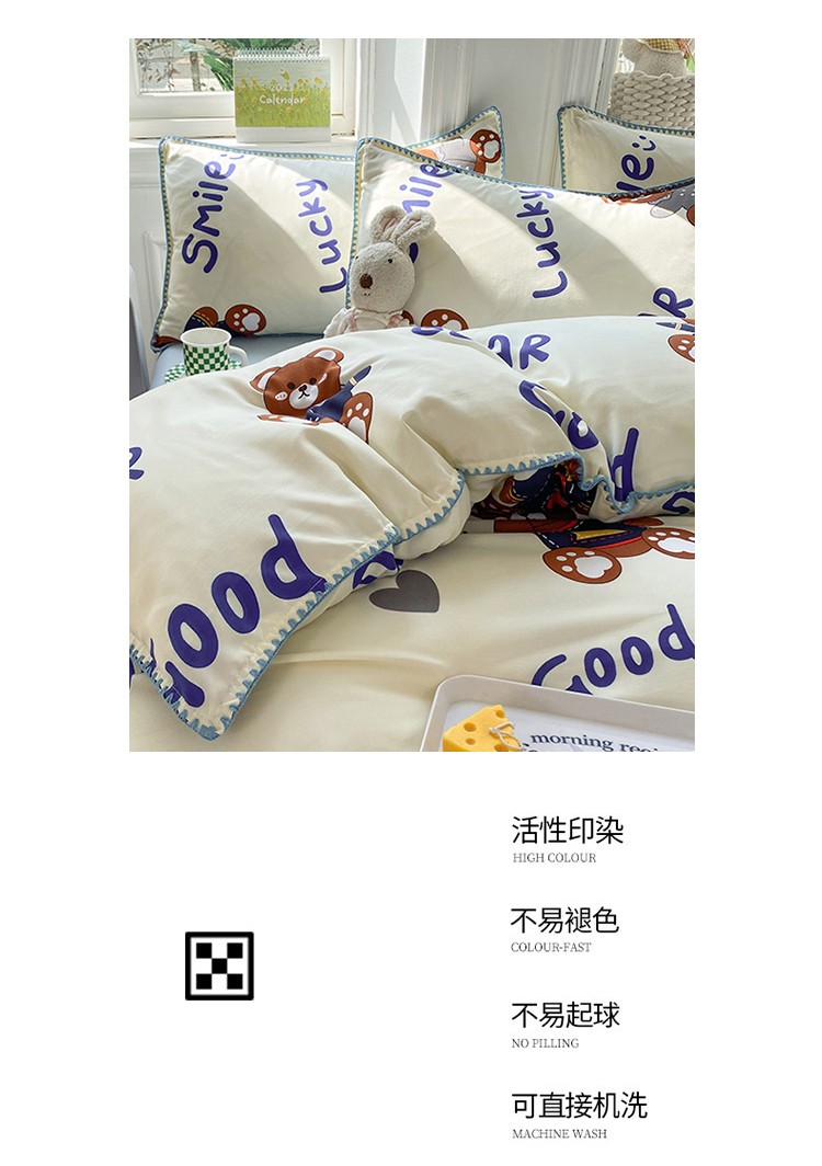 妖妖家纺 2023印花水洗双层纱贝克绣四件套 字母熊