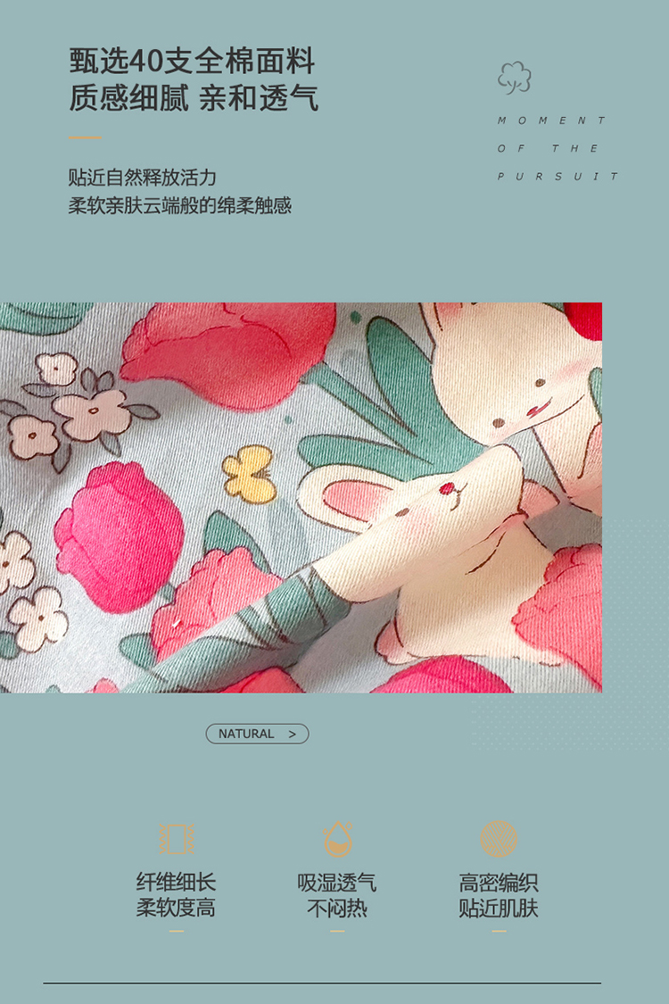 当前位置: 91家纺网 > 商品网购 > 床品套件 > 四件套 > 全棉普通四件套 > 婳庭 2023新款郁金香小兔系列40支全棉印花四件套 郁金香小兔蓝