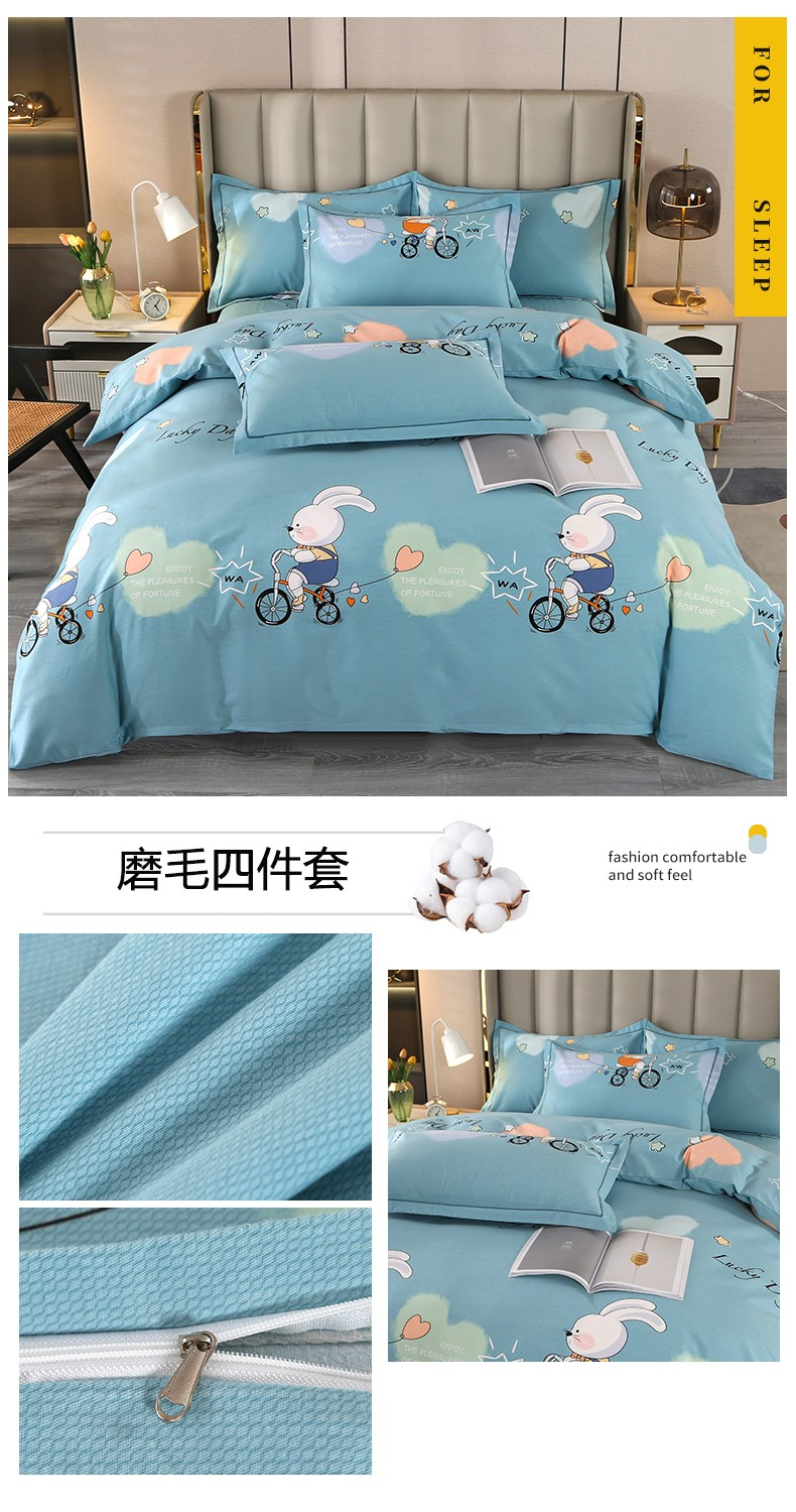橘姿 2023升级喷气全棉磨毛四件套纯棉四件套加厚直播 彼得兔蓝