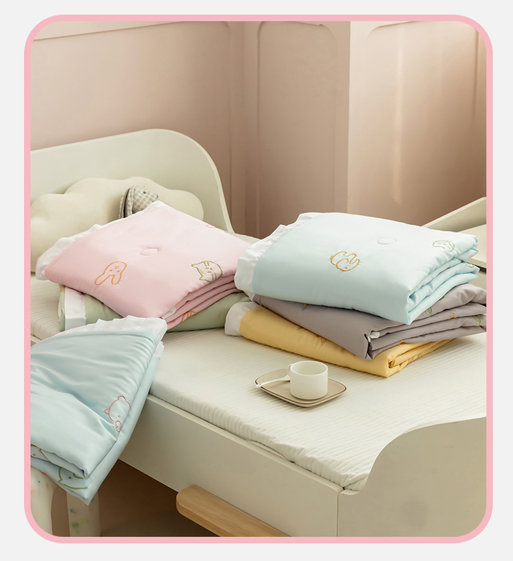 (总)喜多兔儿童家纺 2025新款小惊喜儿童蚕丝蛋白天丝抗菌夏凉被,粉色礼貌小鸭,粉色围裙小兔宝,黄色多彩小狗,黄色画画小猫,灰蓝色活动熊猫,灰蓝色运动小狮子,卡其色勤劳小马,卡其色围兜小熊,绿色萌萌恐龙,绿色微笑小猴