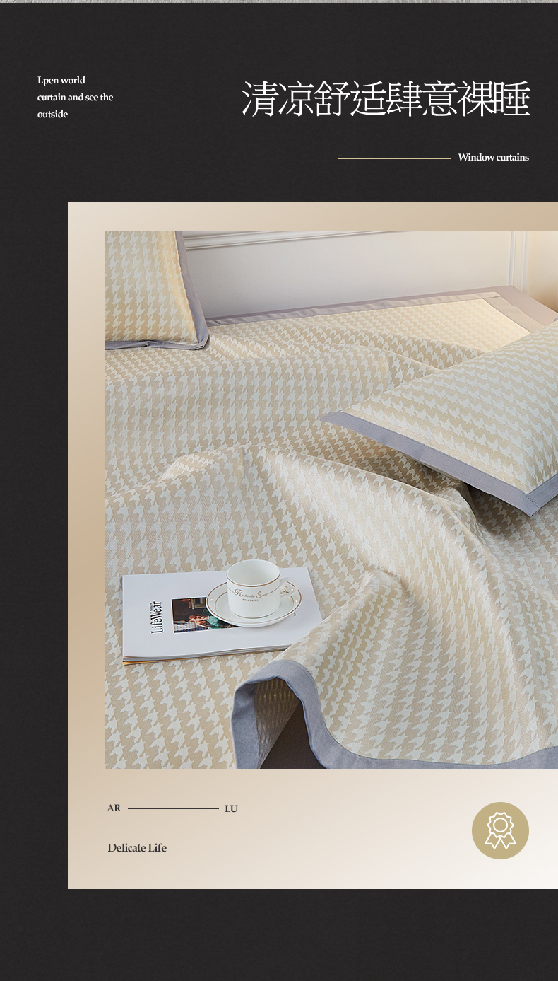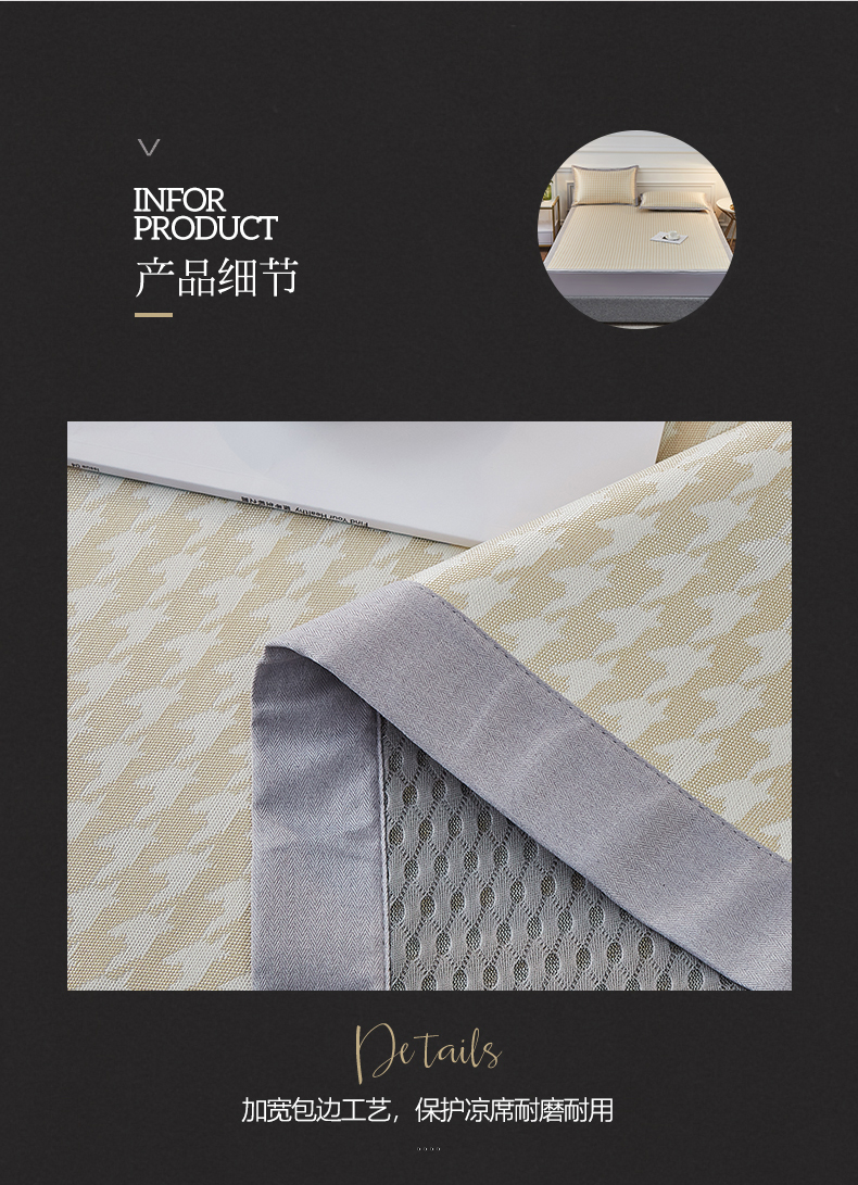 当前位置: 91家纺网 > 商品网购 > 床上用品 > 凉席 > 冰丝席 > 耀悦家纺 2023新款冰丝凉席三件套千鸟格 浅黄