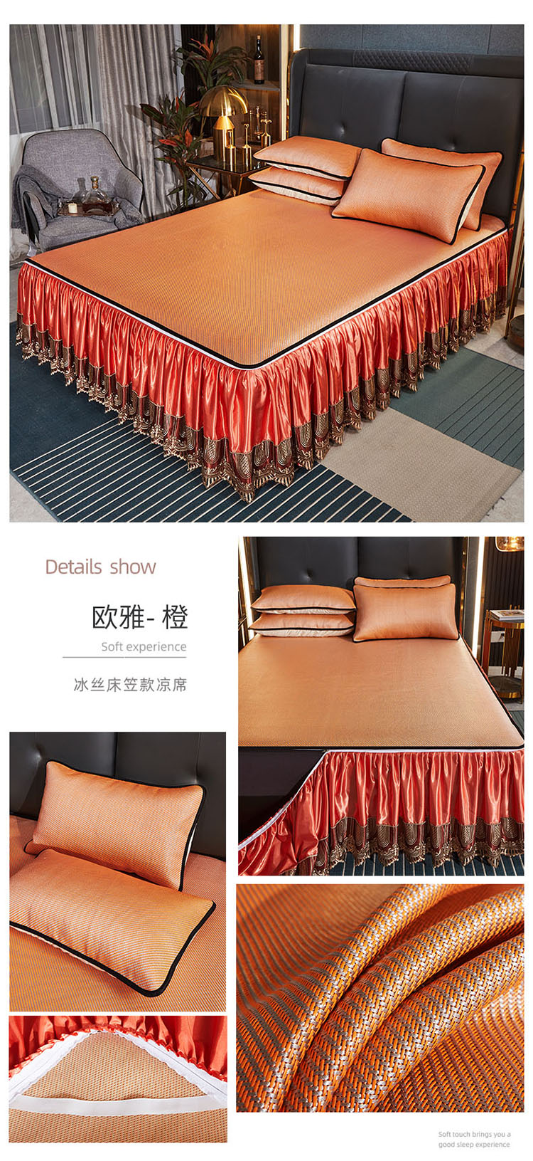 商品名称:恋尚 2024新款冰藤软凉席床裙款三件套(可脱卸) 欧雅- 橙