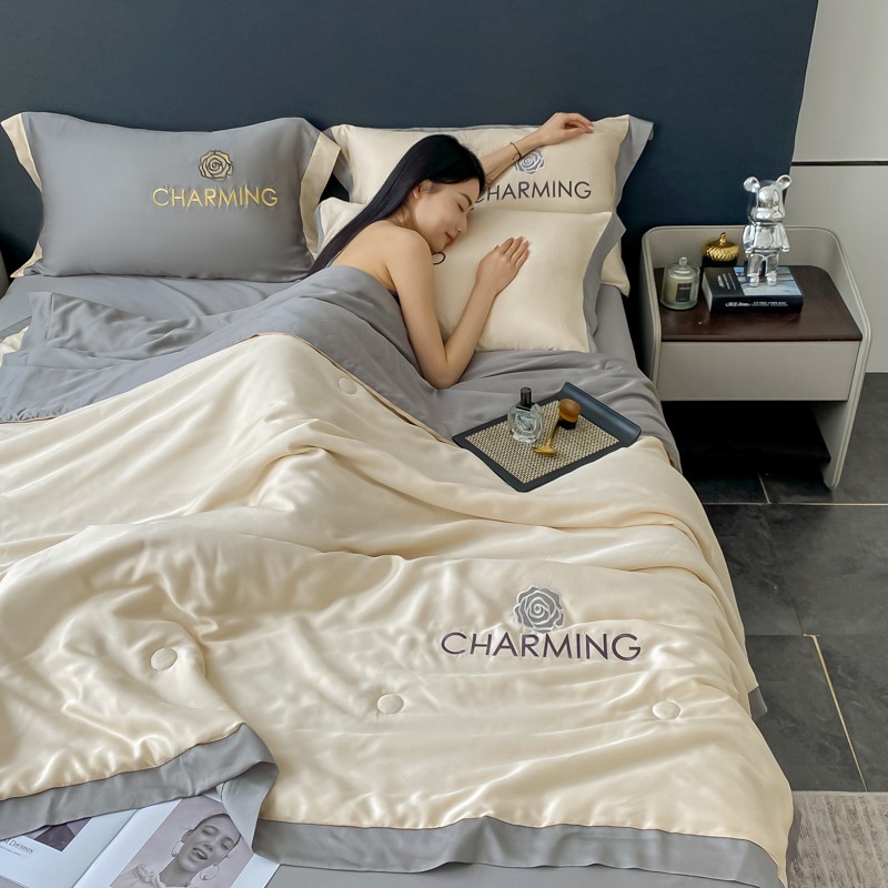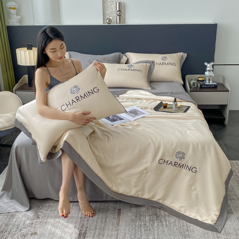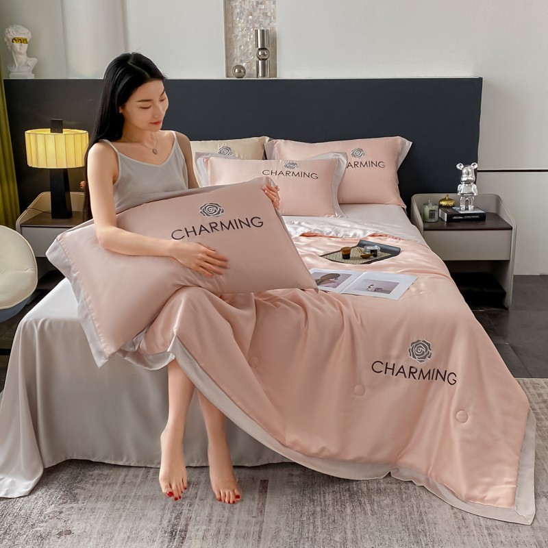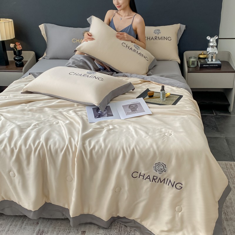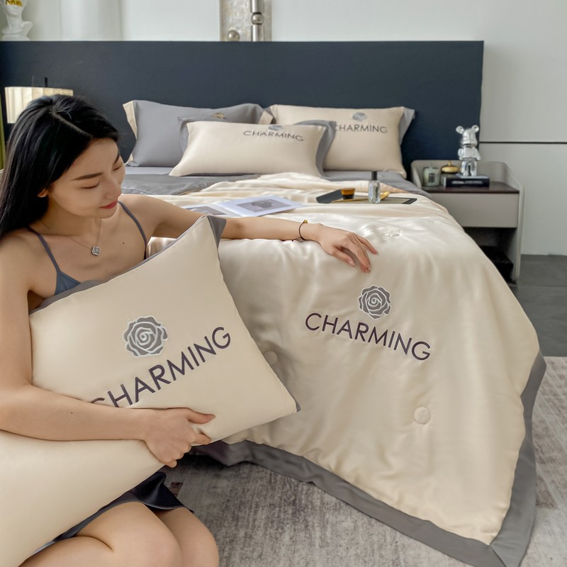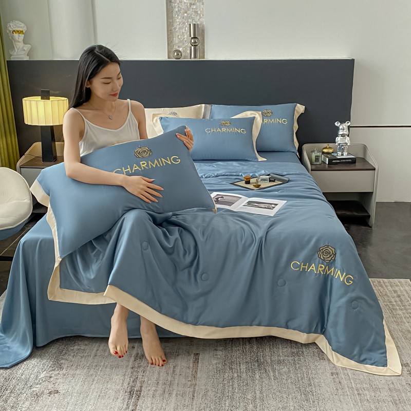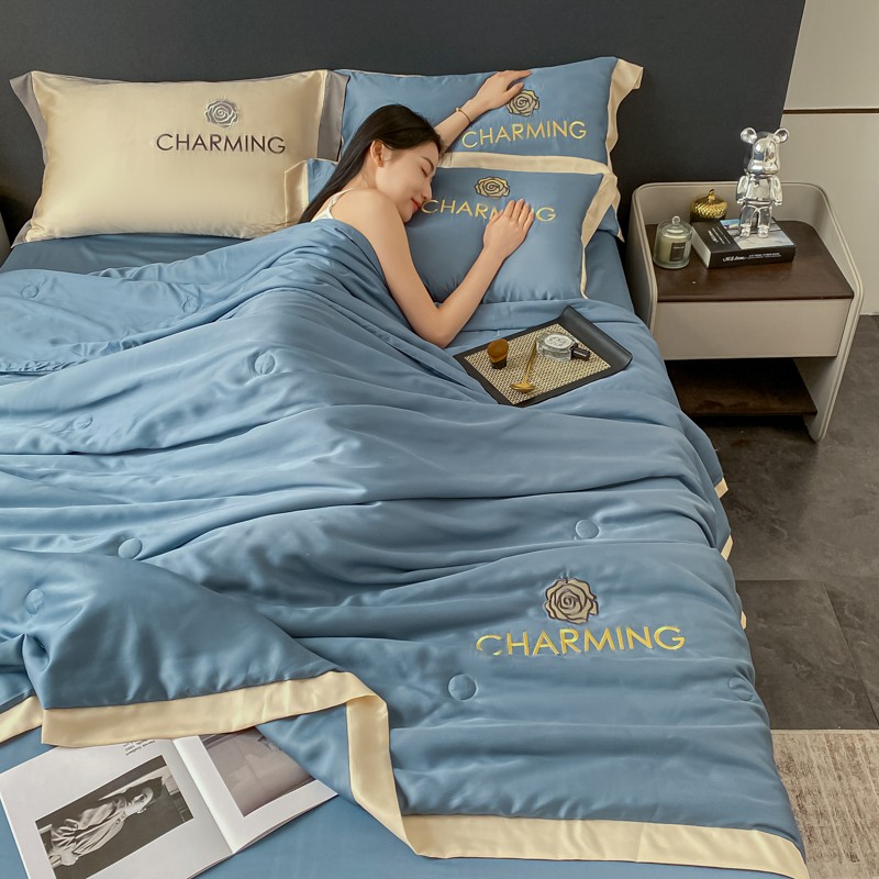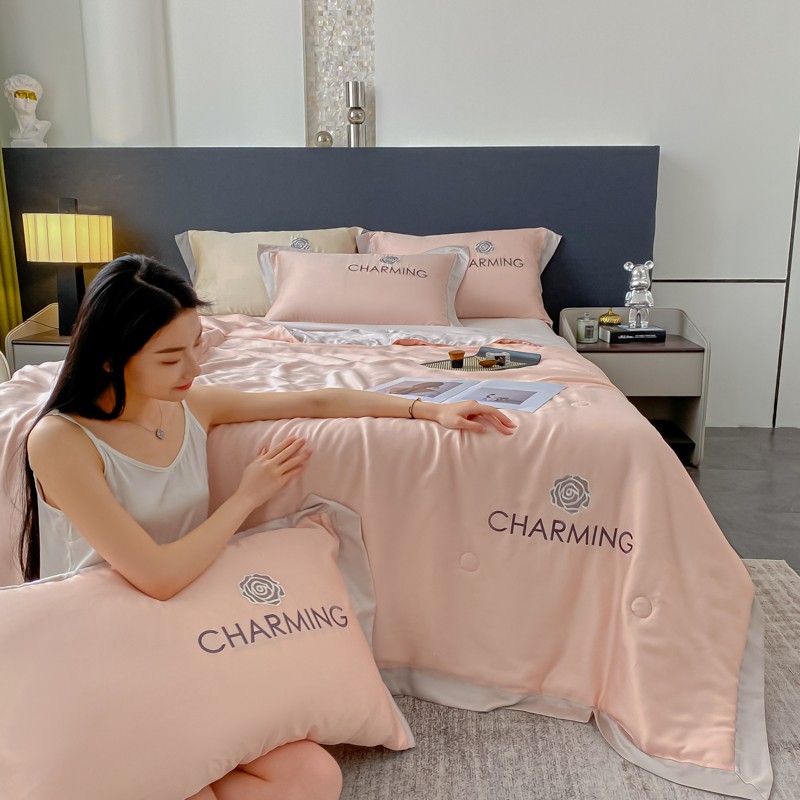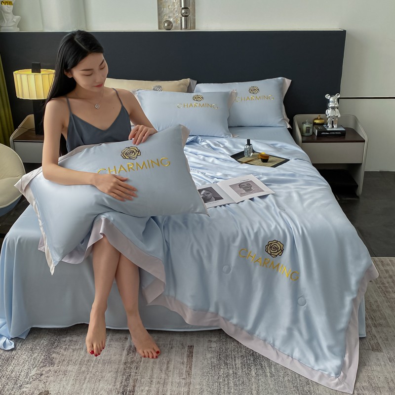 (总)佰亿莱 2024新款水洗天丝刺绣款夏被四件套山茶花系列