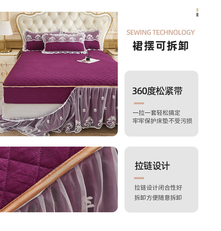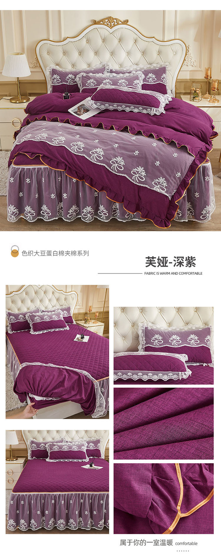 当前位置: 91家纺网 > 商品网购 > 床品套件 > 四件套 > 恋尚 2023新款色织系列床笠床裙可脱卸 四件套 芙娅-深紫
