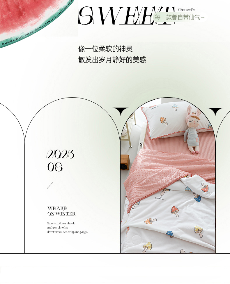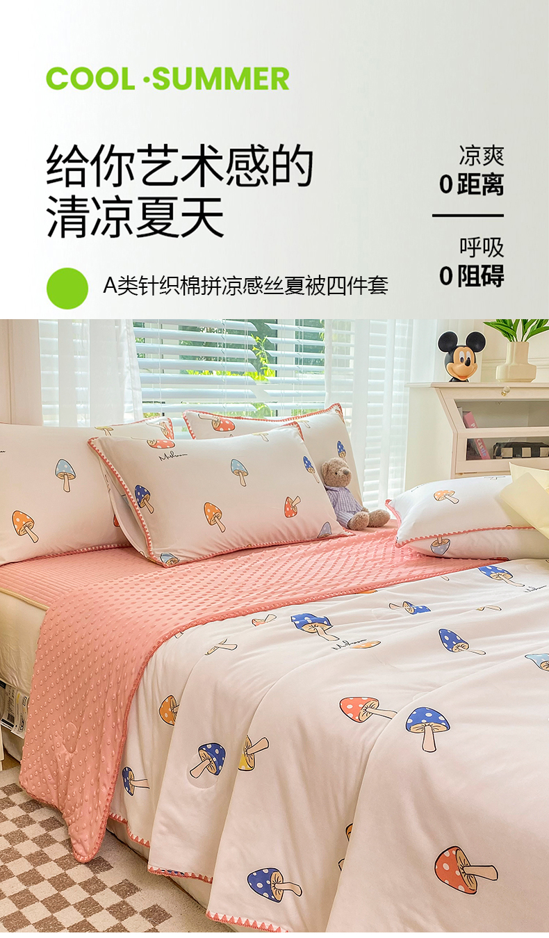 当前位置: 91家纺网 > 商品网购 > 床上用品 > 凉席 > 凉席套件 > 花漾 2024新款A类针织棉凉感丝夏被凉席四件套自然光 梦幻蘑菇