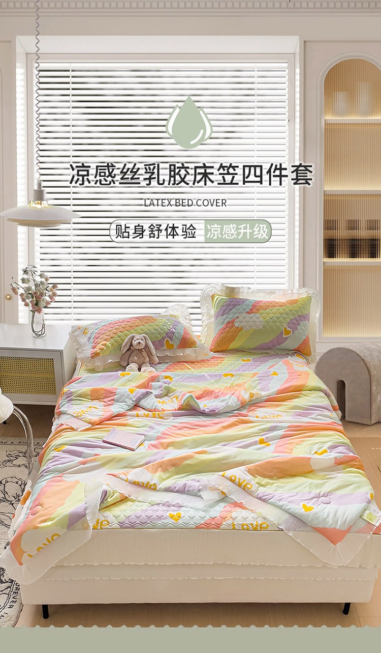 恋尚 2023新款加厚印花乳胶床笠夏被四件套(0.5公分) 彩虹糖