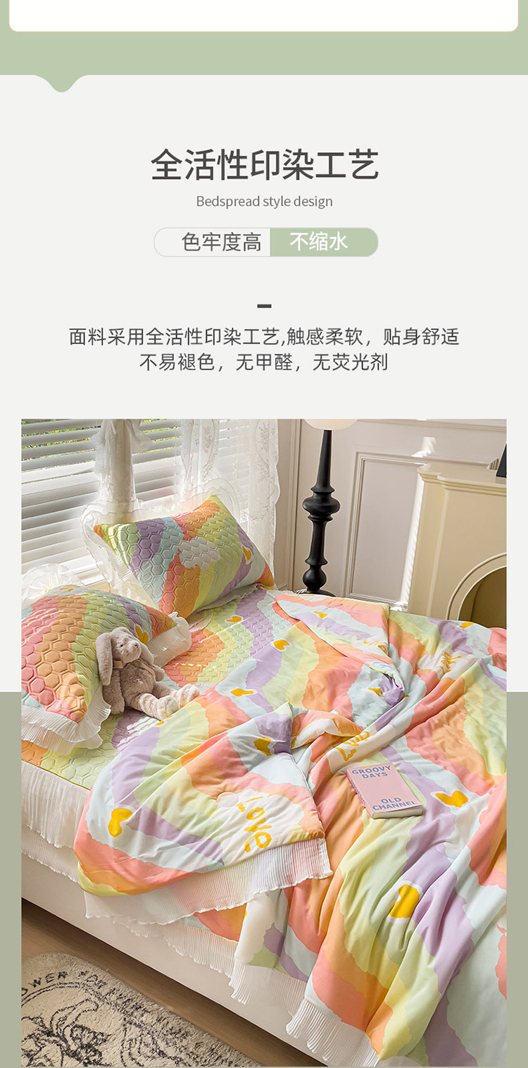 商品名称:恋尚 2023新款加厚印花乳胶床笠夏被四件套(0.5公分) 彩虹糖