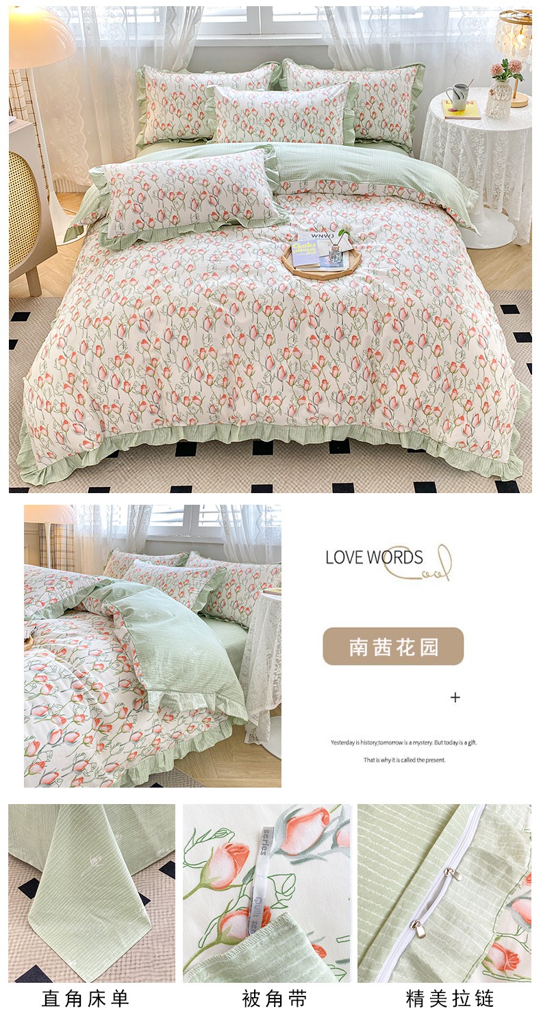 当前位置: 91家纺网 > 商品网购 > 床品套件 > 四件套 > 全棉普通四件套 > 宇彬20223年新款13372全棉韩版刺绣花边和印花花边四件套和单被套 印花花边 南茜花园
