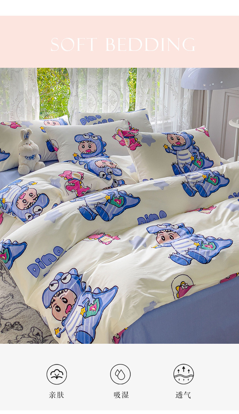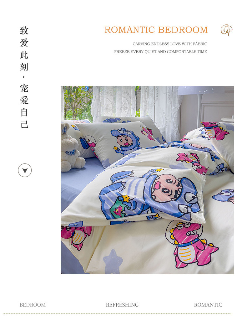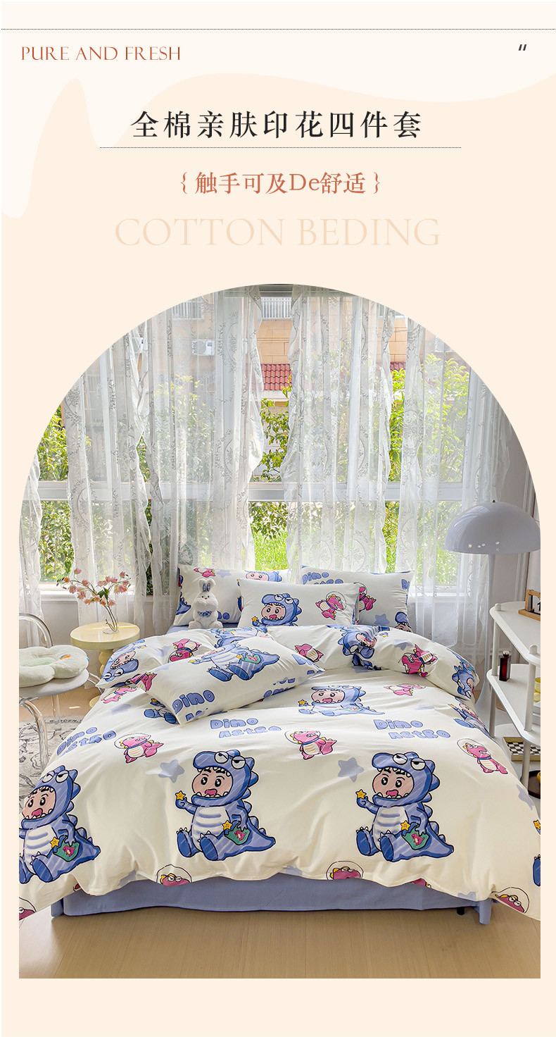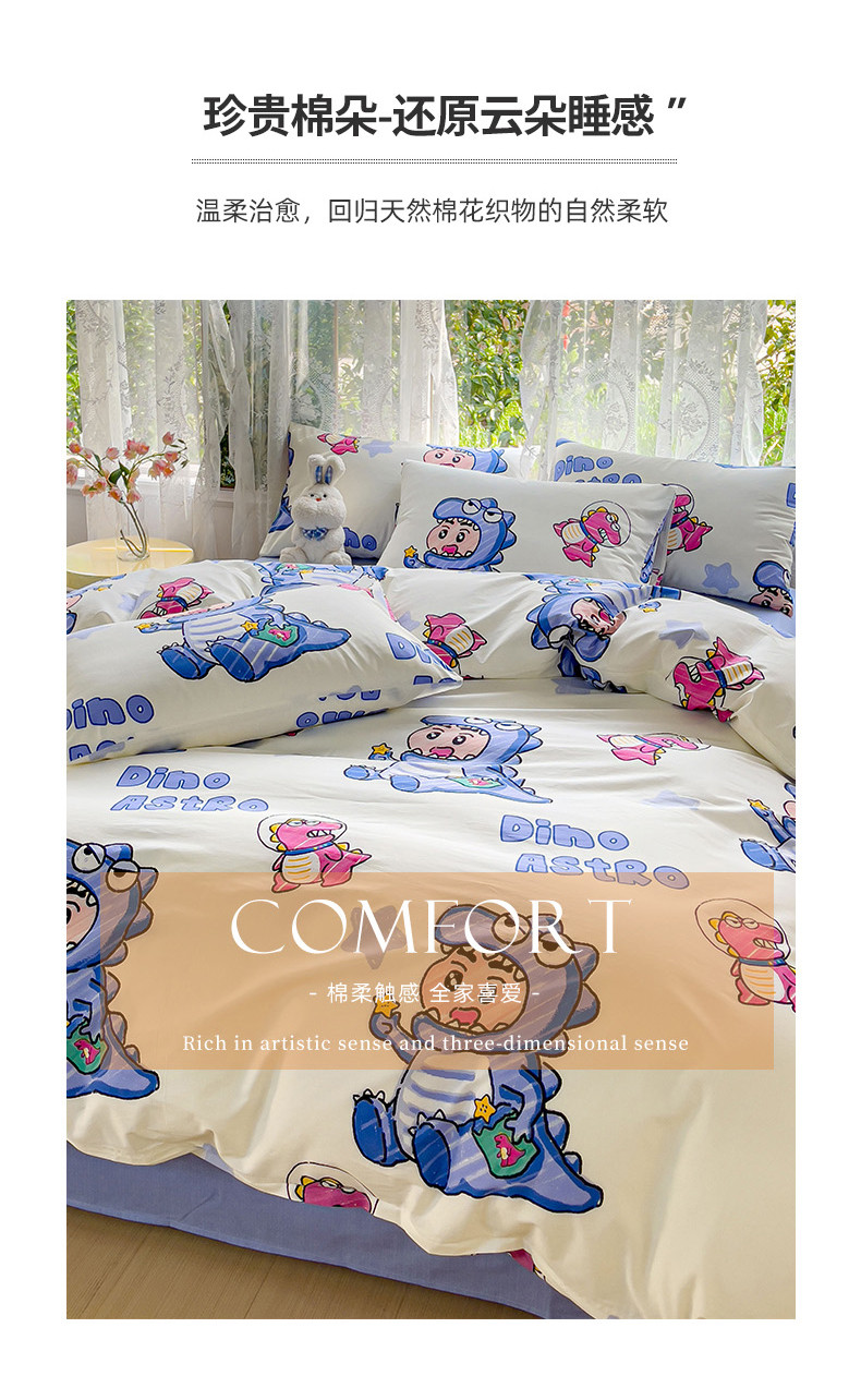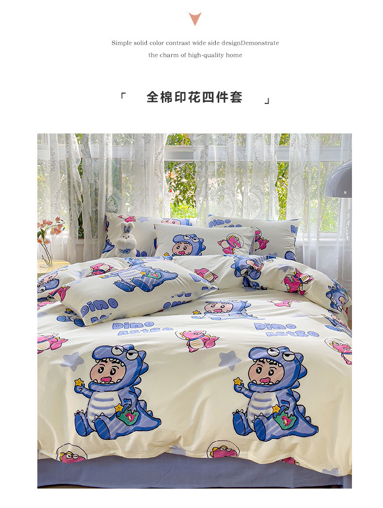 感遇家纺 2023新款全棉印花四件套 恐龙宝宝