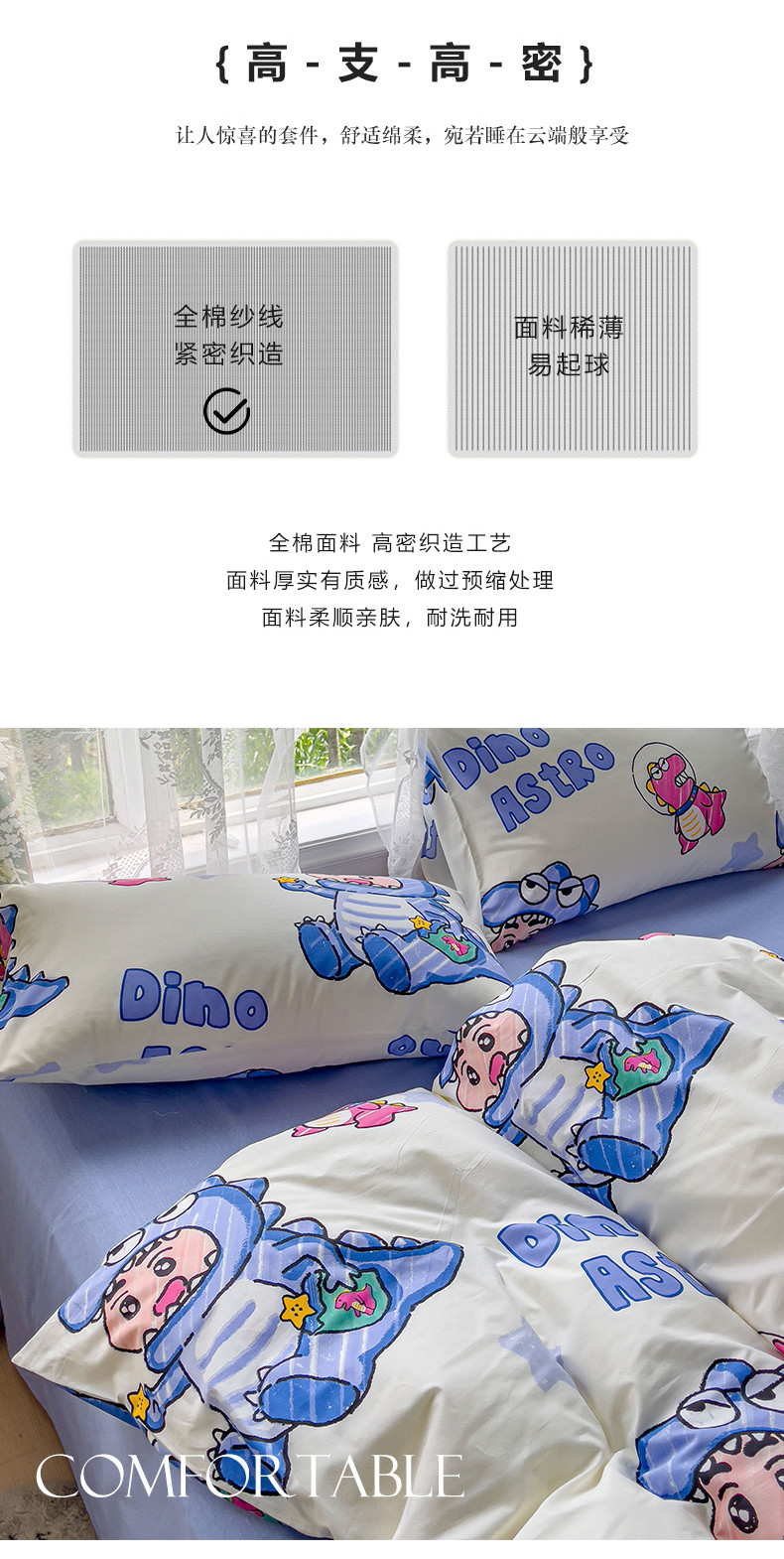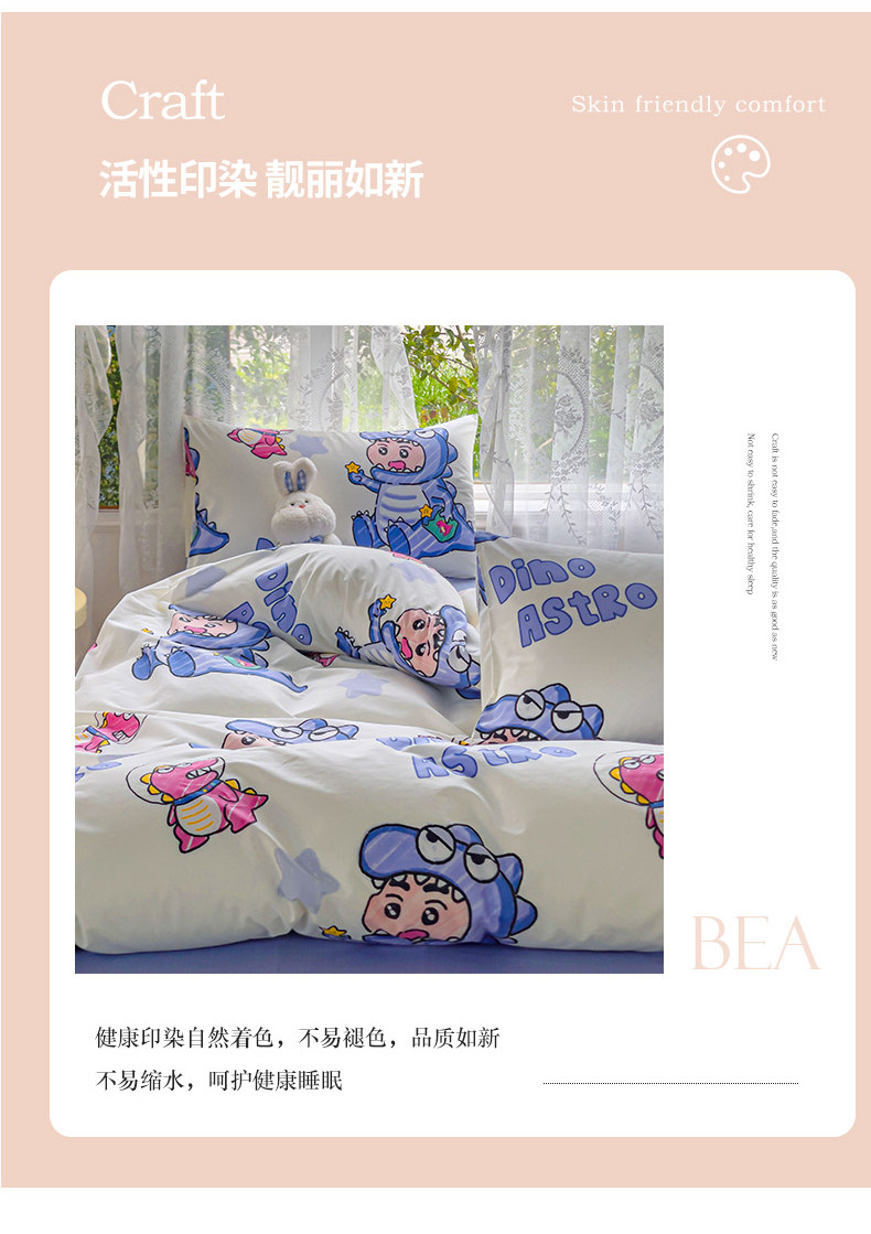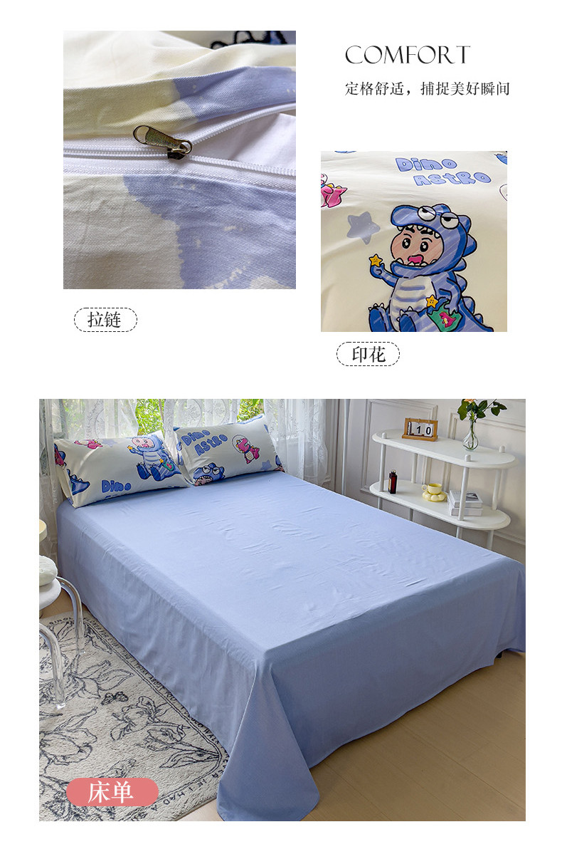 商品名称:感遇家纺 2023新款全棉印花四件套 恐龙宝宝