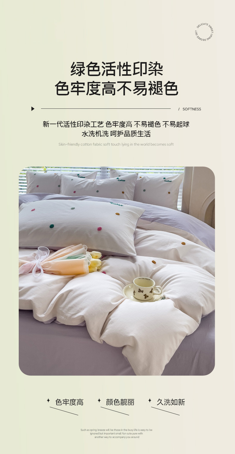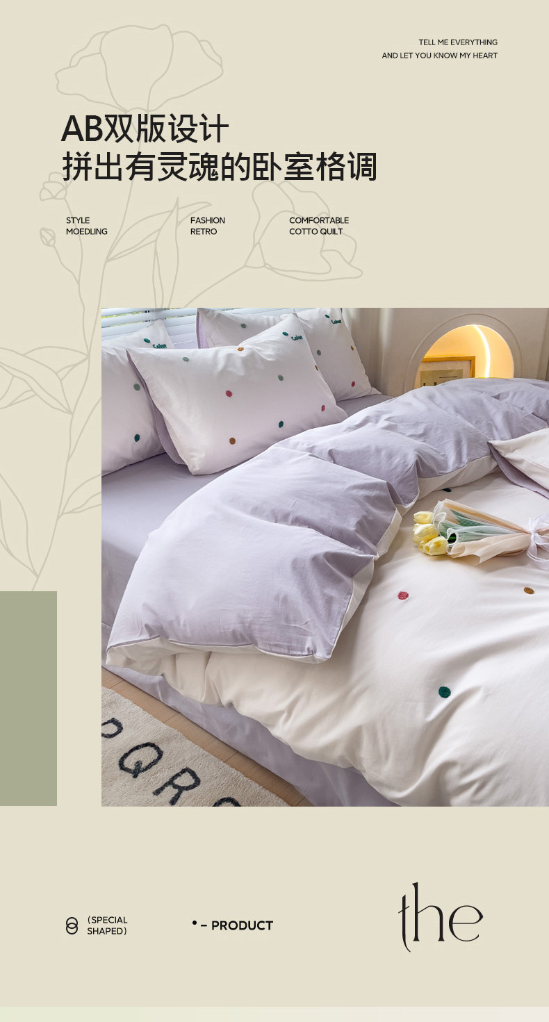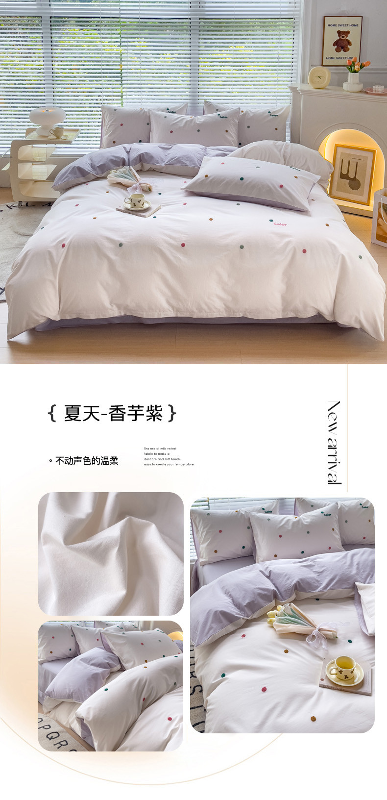 丽涵家纺 2024新款40S全棉水洗棉绣花四件套-夏天 夏天-香芋紫