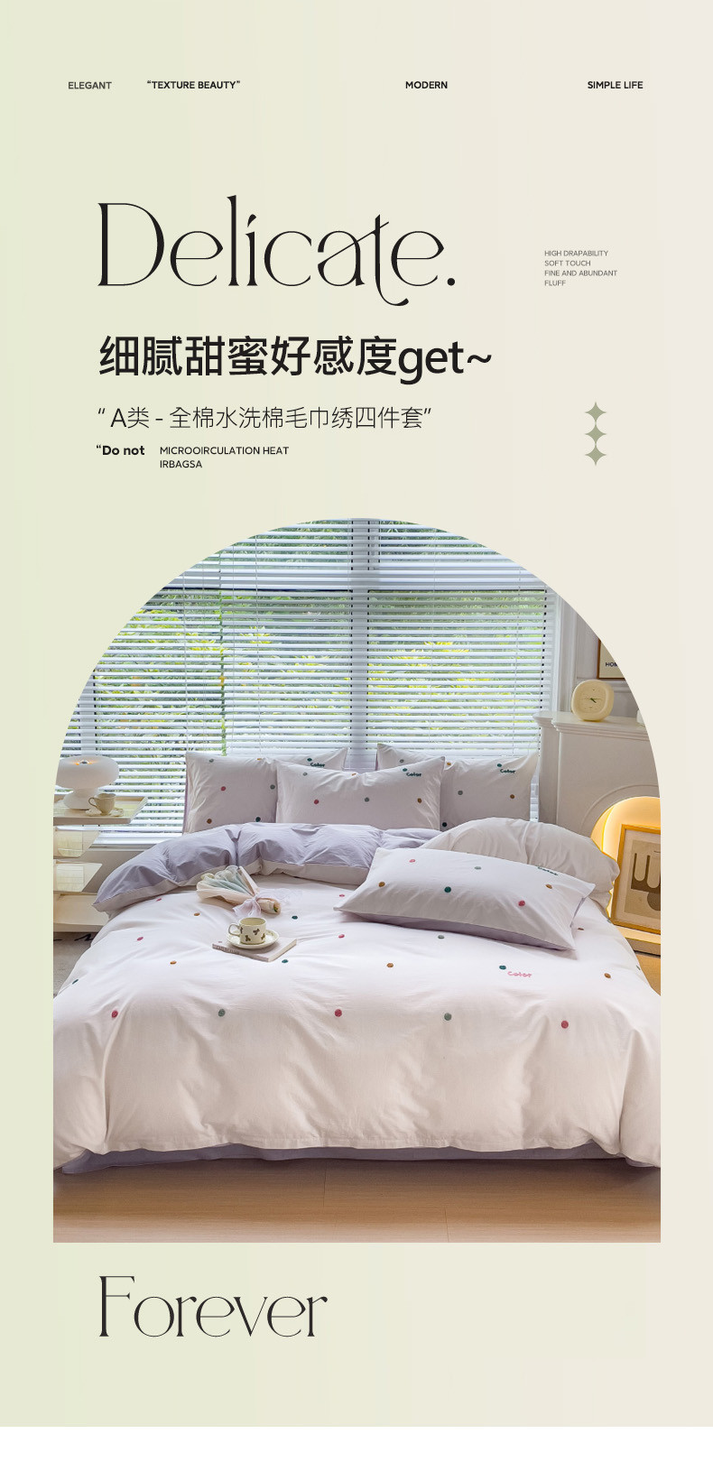 (总)丽涵 2025年春夏新品全棉双层纱印花毛巾绣四件套,爱心豹纹,焕彩星空,俏皮波点,少女日记,运染少女心