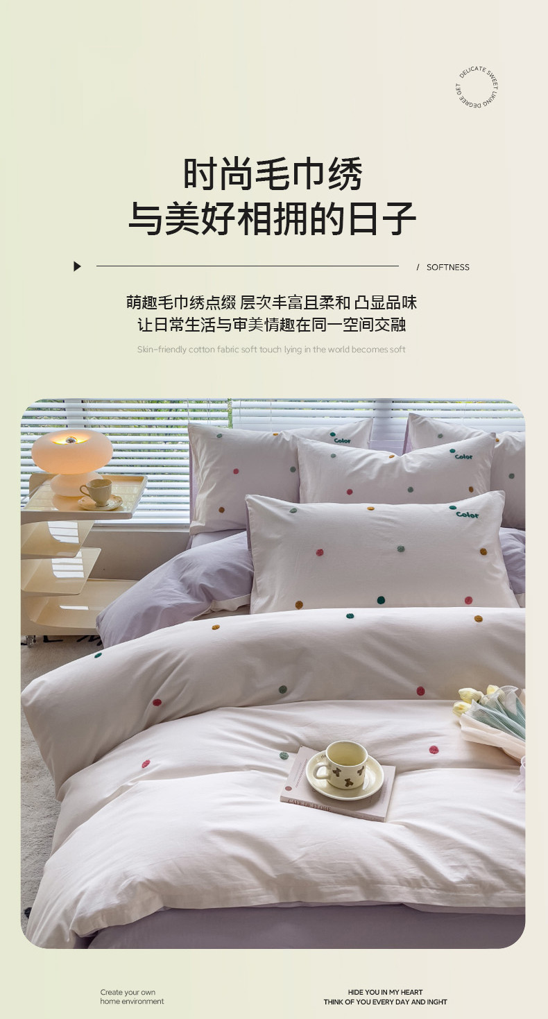 (总)丽涵家纺 2025秋冬新品混搭波点牛奶绒四件套三件套-拍摄风格二,波点-粉色,波点-蓝色,波点-奶白,波点-紫色