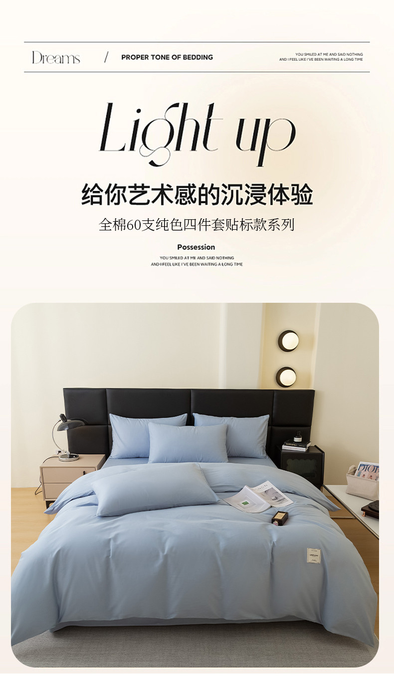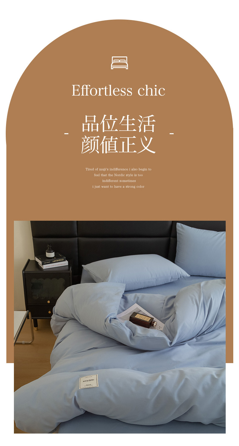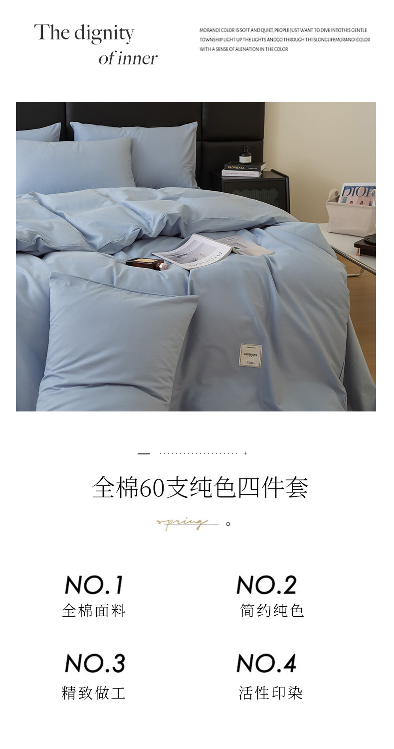 商品名称:N先生 2025新款全棉60支纯色四件套贴标款 雾蓝