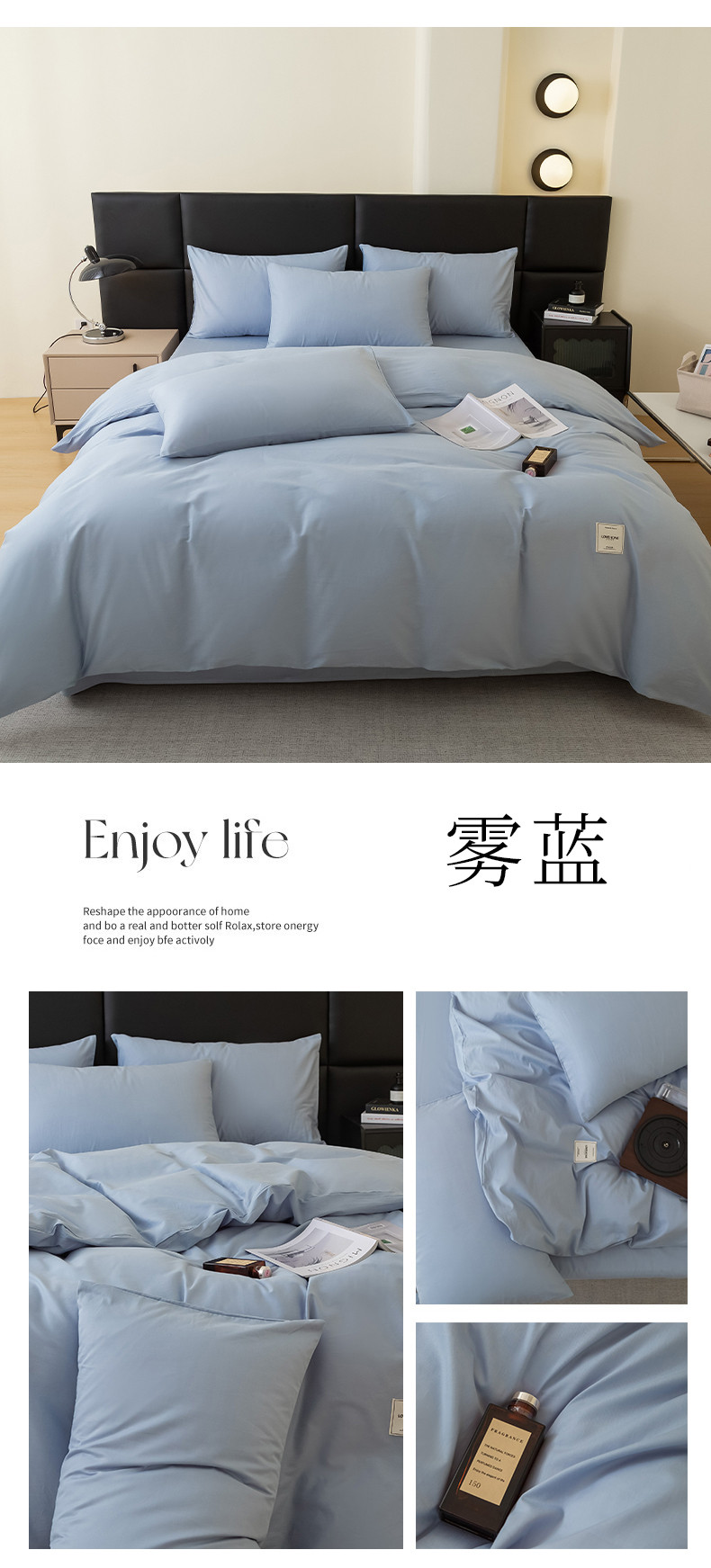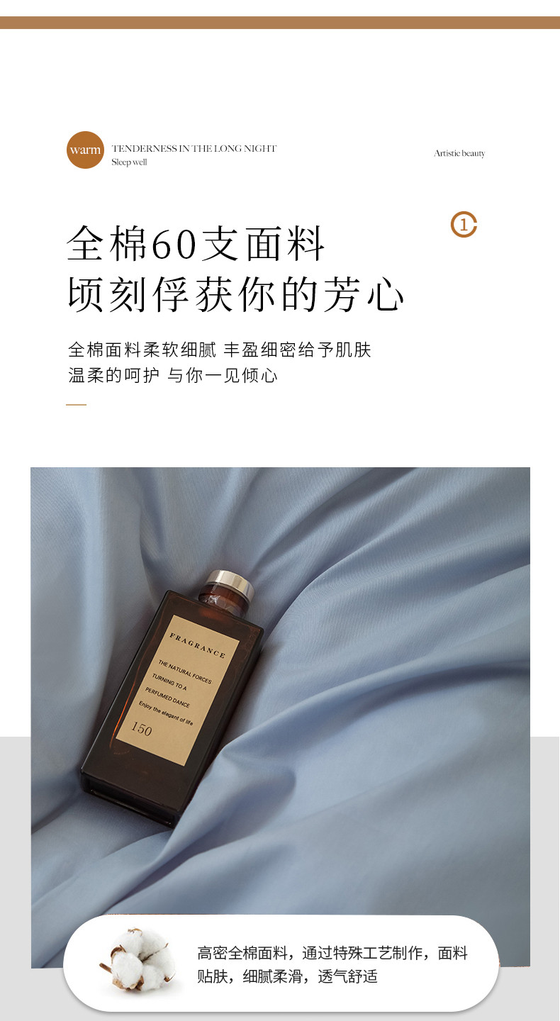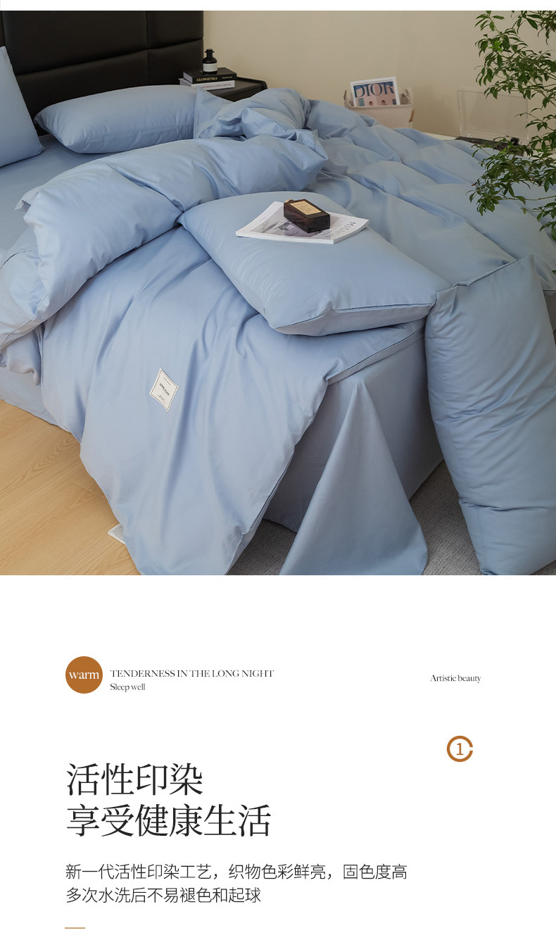 商品名称:N先生 2025新款全棉60支纯色四件套贴标款 雾蓝