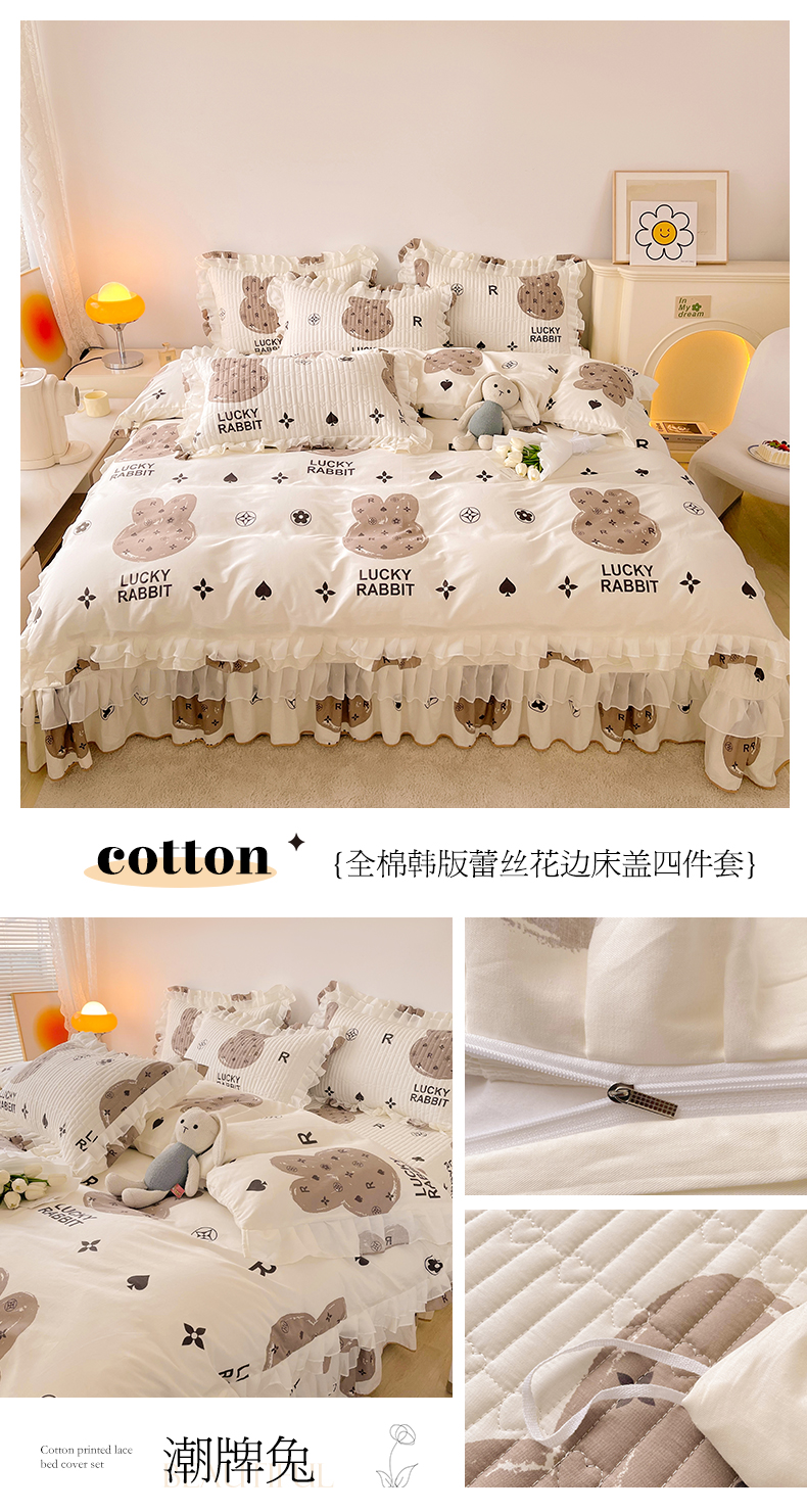 宜凡 2023新款全棉双层花边床盖四件套系列 潮牌兔