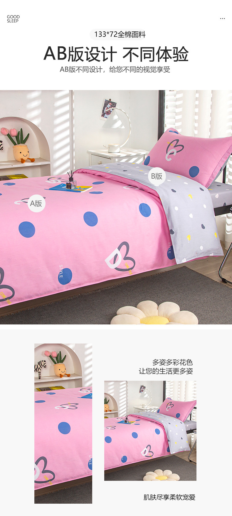 当前位置: 91家纺网 > 商品网购 > 床品套件 > 六件套 > 乐旗 2023新款13372全棉三件套 字母甜心