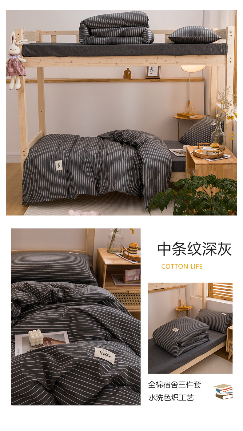 当前位置: 91家纺网 > 商品网购 > 床品套件 > 三件套 > 柠萌 2025新款A类全棉色织水洗棉学生宿舍上下铺全棉三件套 中条纹深灰