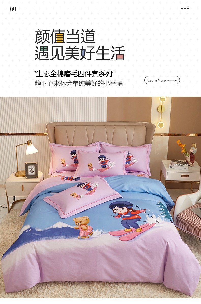 商品名称:雲归梦 2023年新款加厚全棉生态磨毛大版四件套 蜜雪冰城-紫