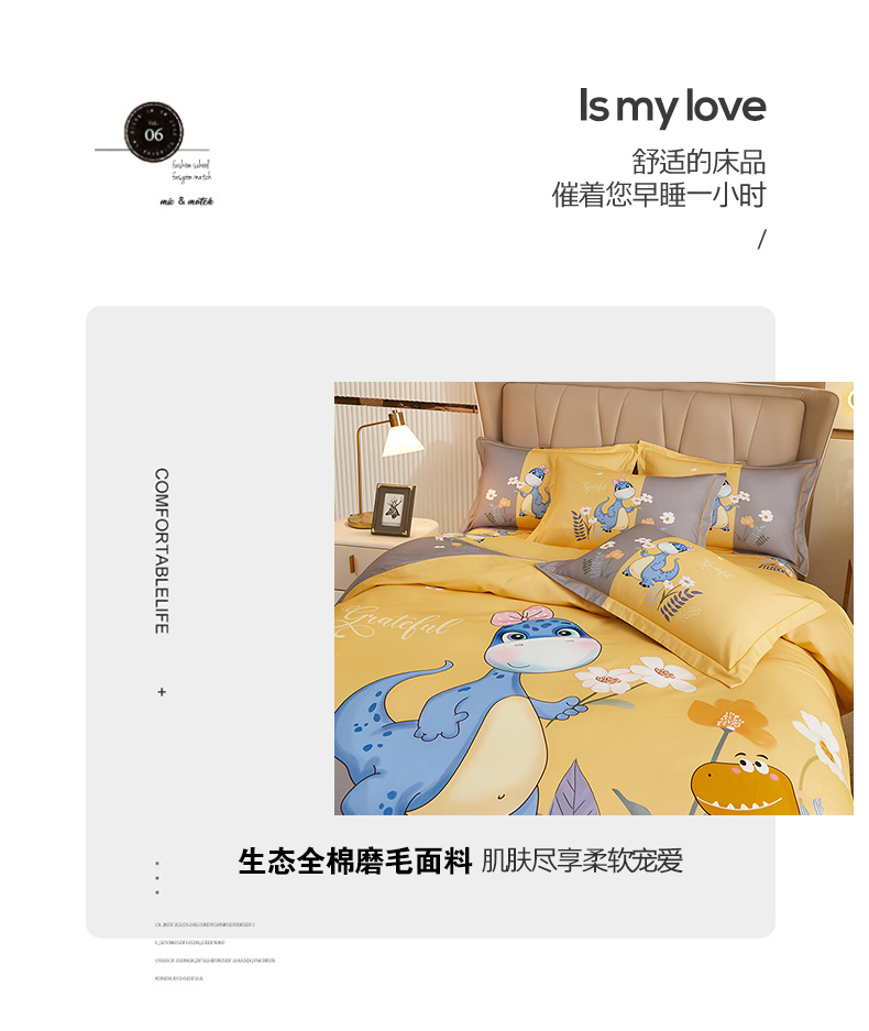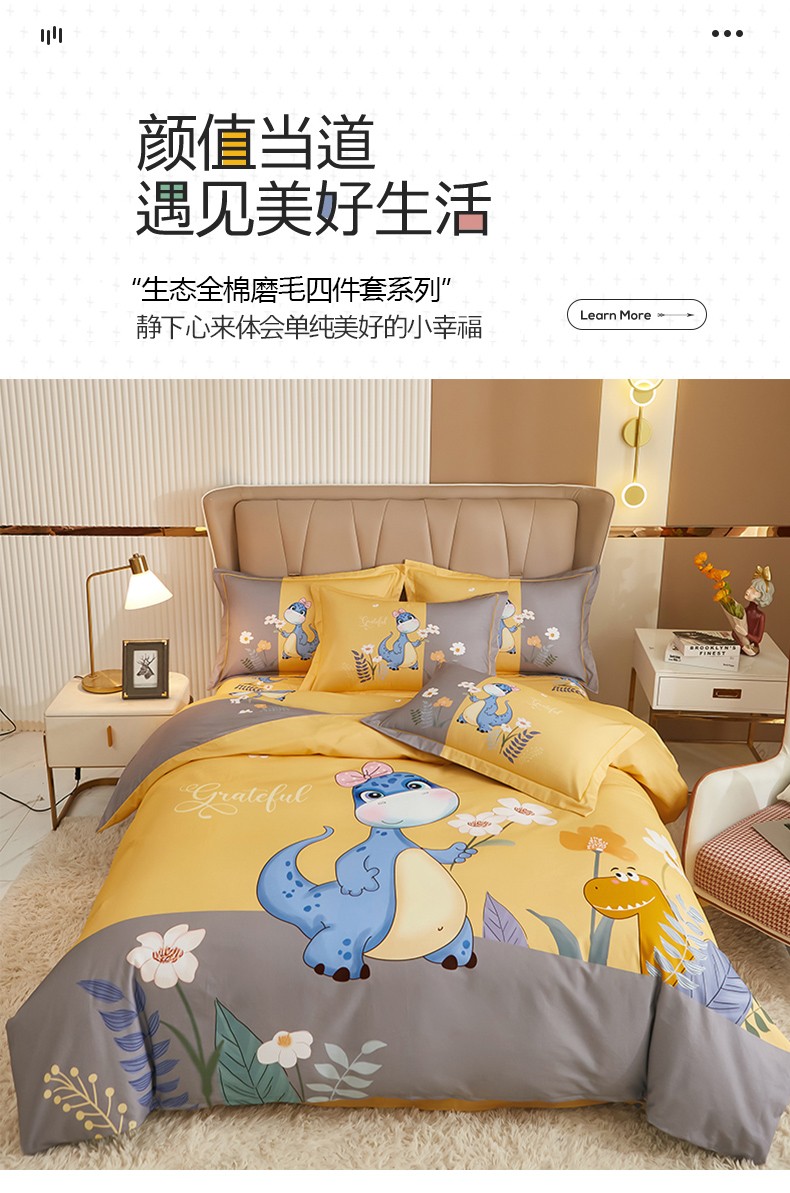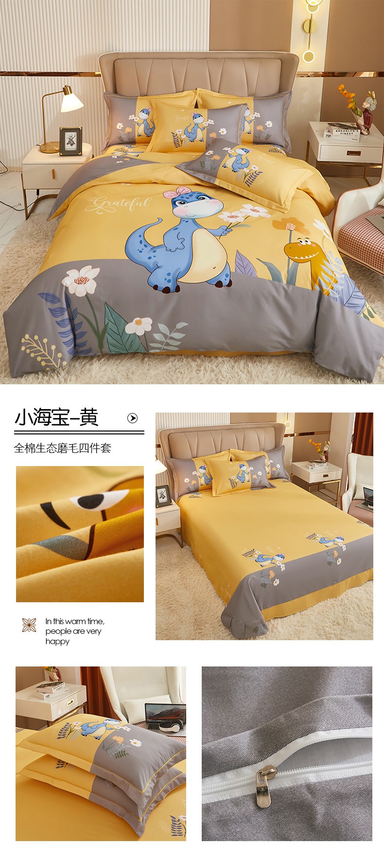 商品名称:雲归梦 2023年新款加厚全棉生态磨毛大版四件套 小海宝-黄
