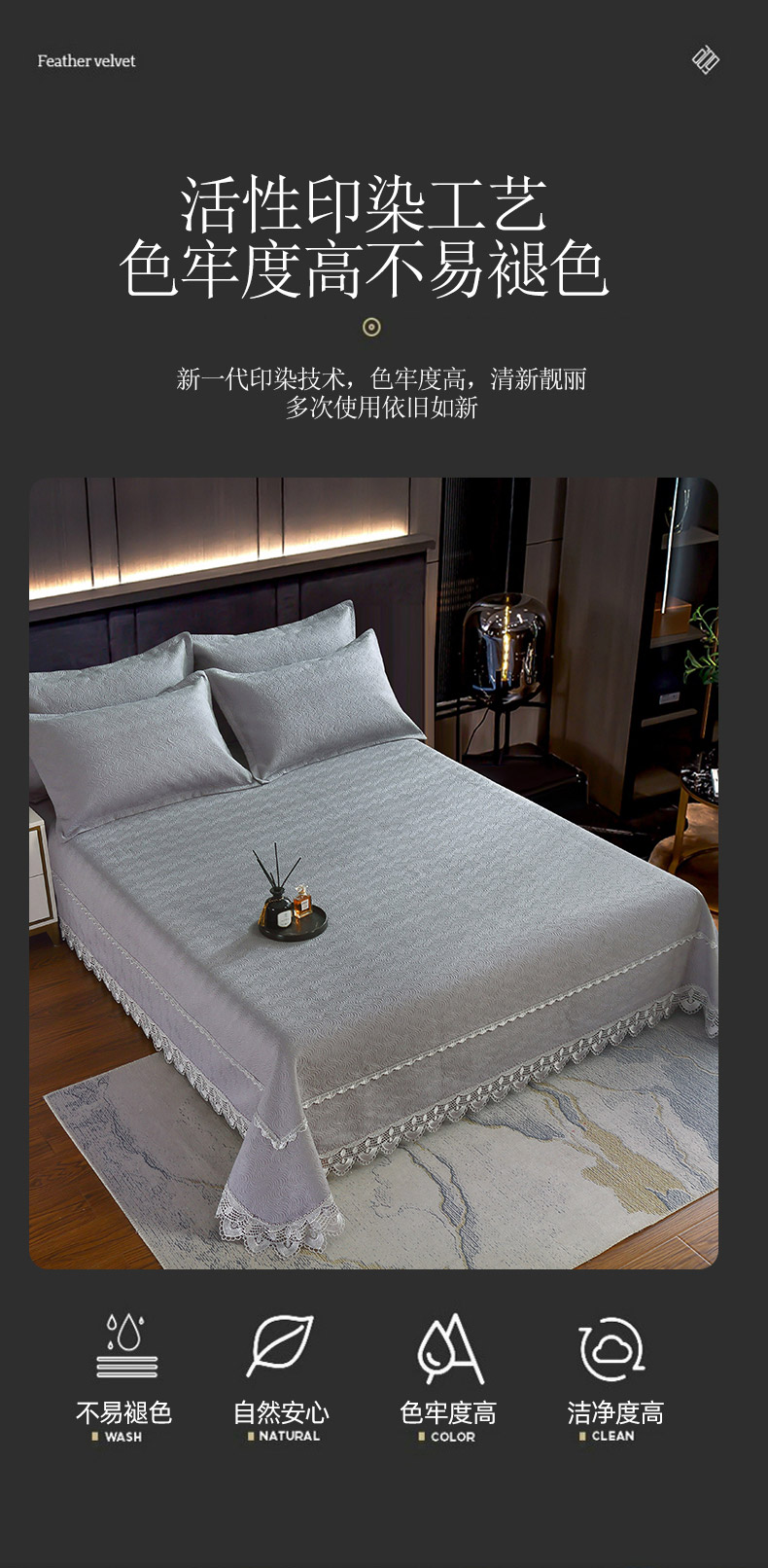 (总)OL家纺 2021居家全棉羊绒保暖亲肤色织蕾丝四件套,海蓝,玫红,活力橙,绅士灰,桃红,熏衣紫,奶茶色,粉玉,薄荷绿,柠檬黄
