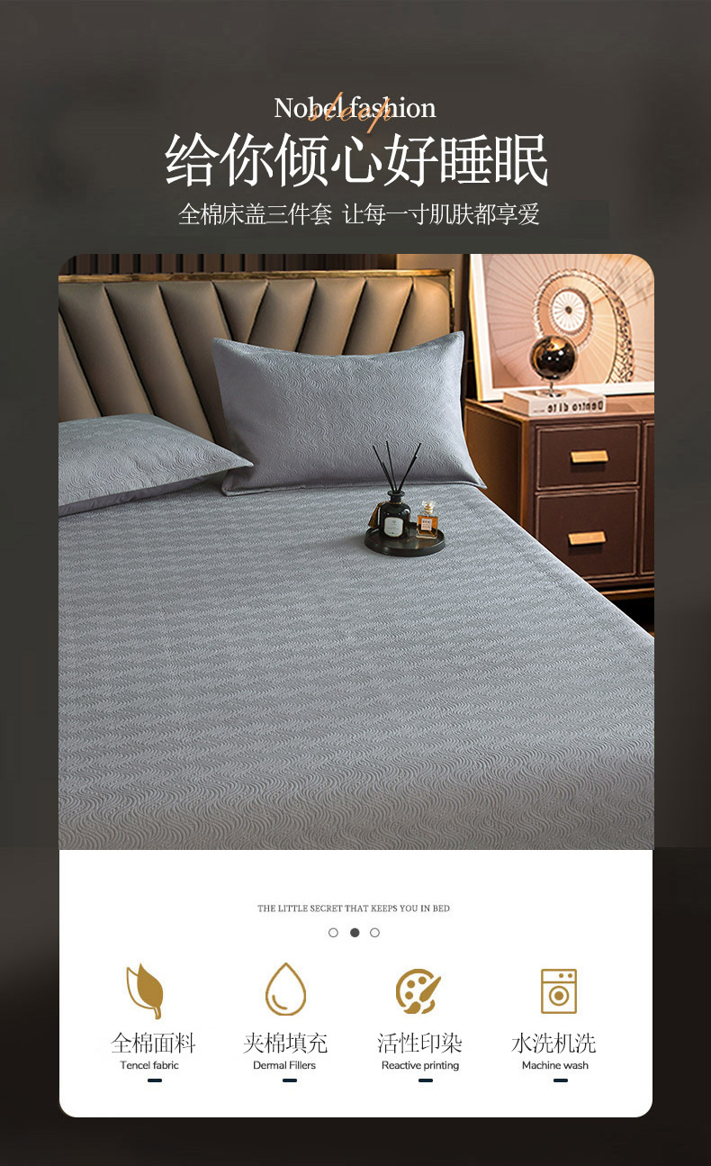 商品名称:OL家纺 2023新款全棉水溶花边素色床盖夹棉三件套 浅灰