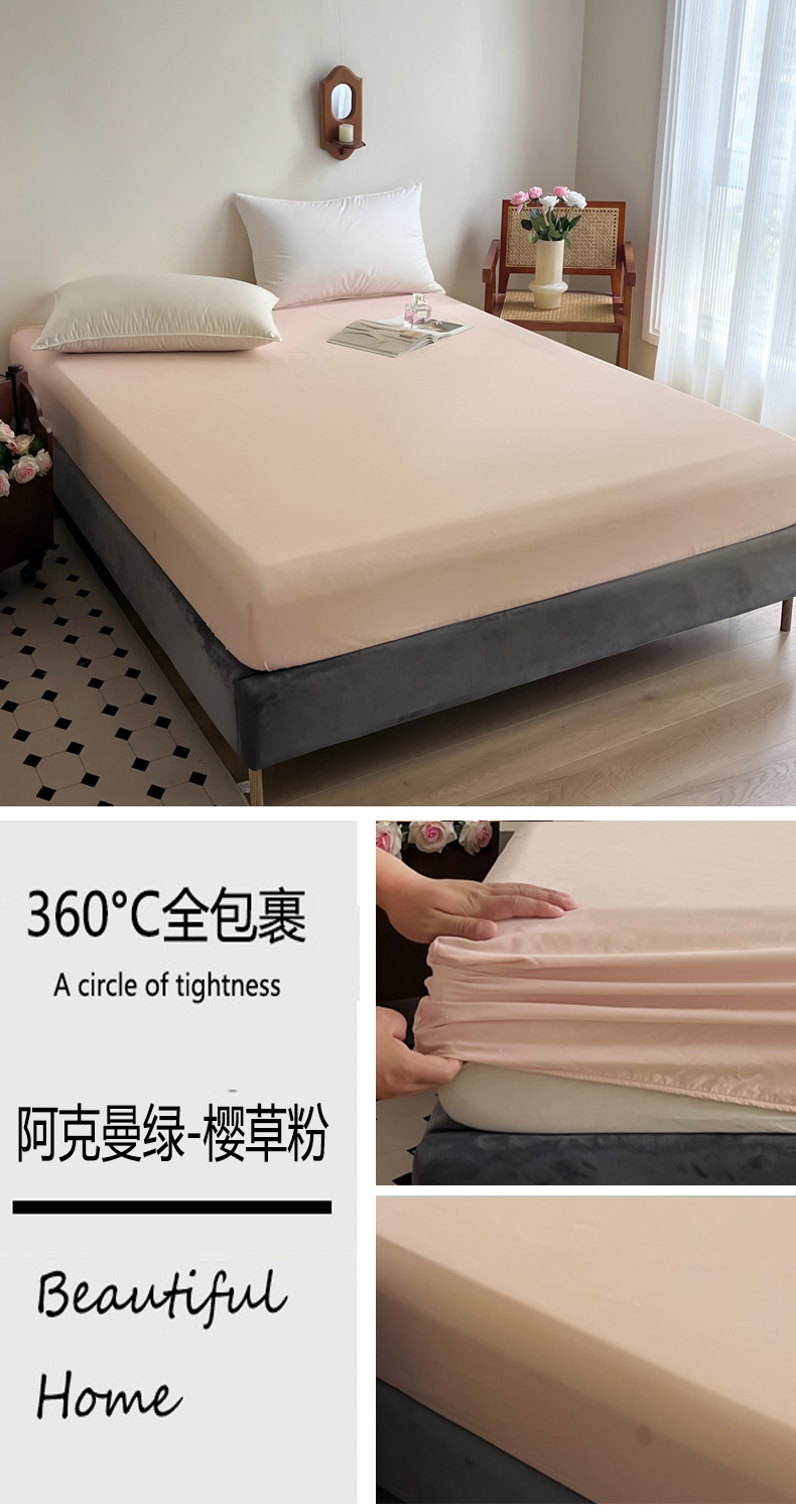 艾迪尚家纺2025新款100s生态全棉纯色磨毛单品床笠 阿克曼绿樱草粉