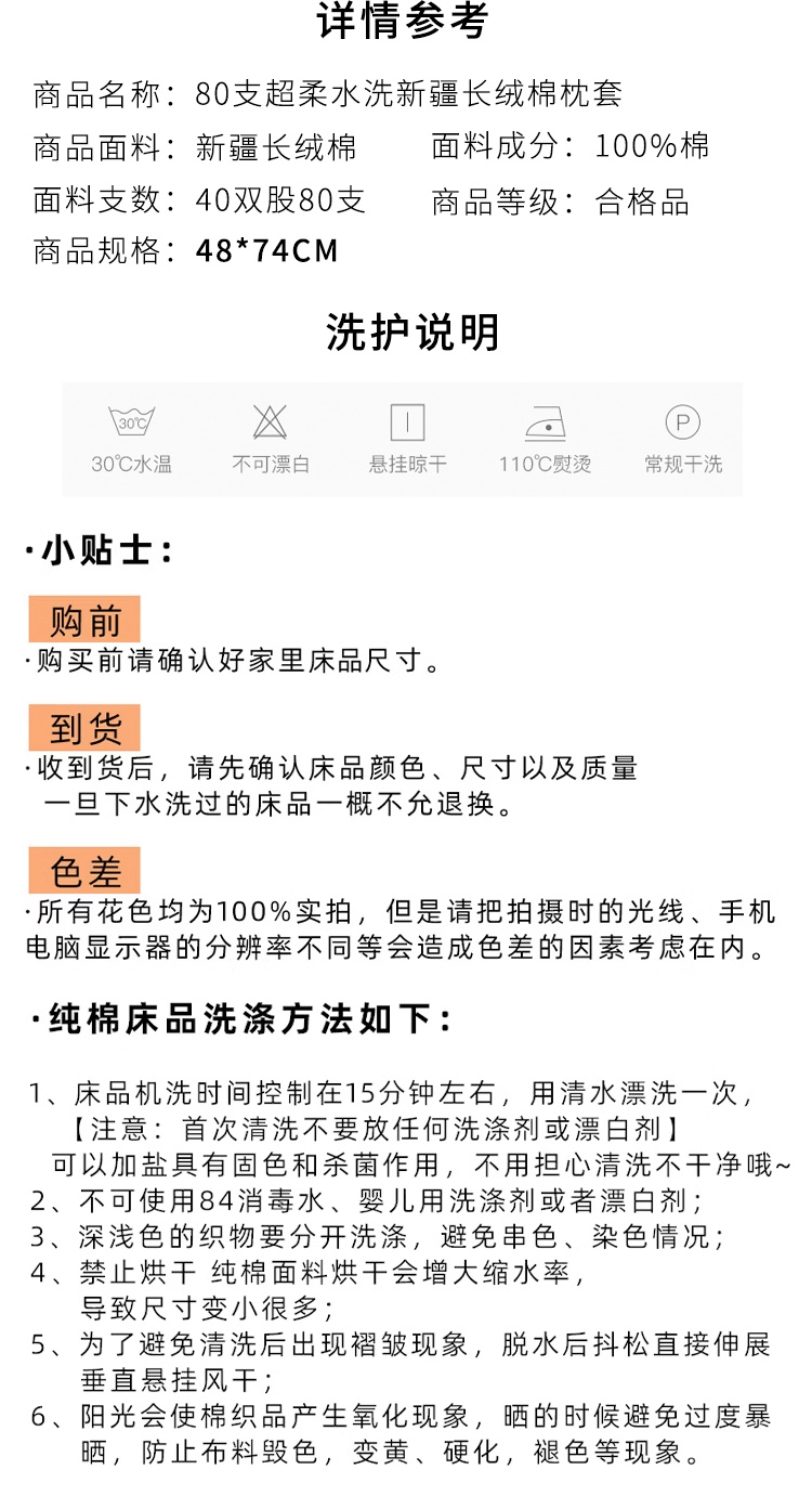 商品名称:(总)丰淘 2023新款80s纯棉纯色枕套