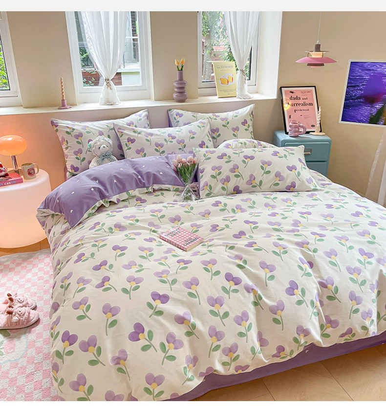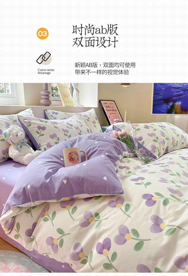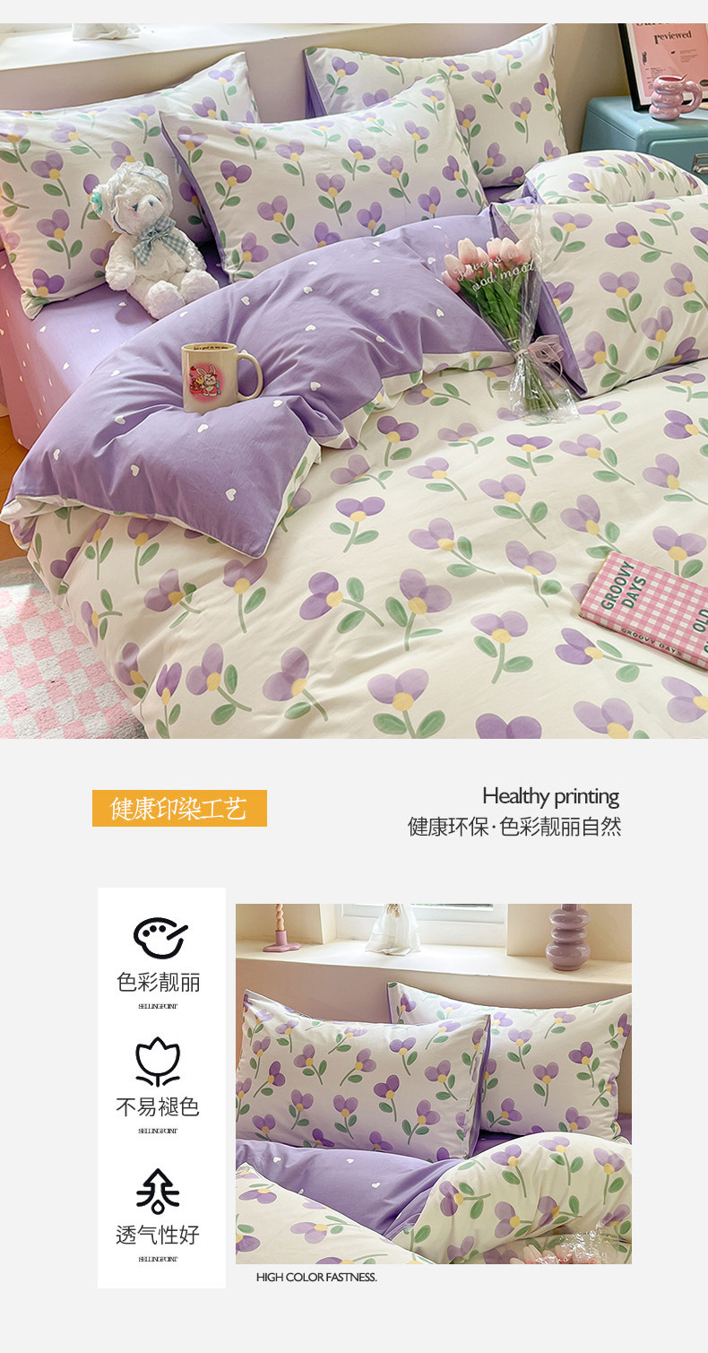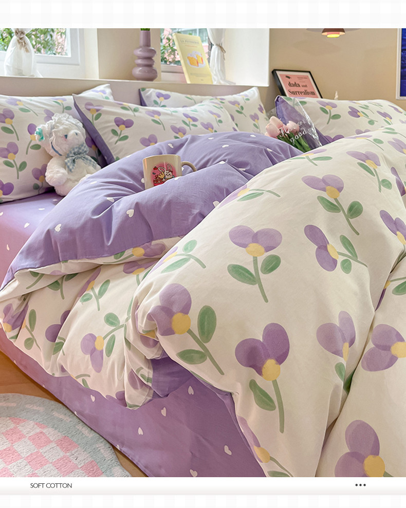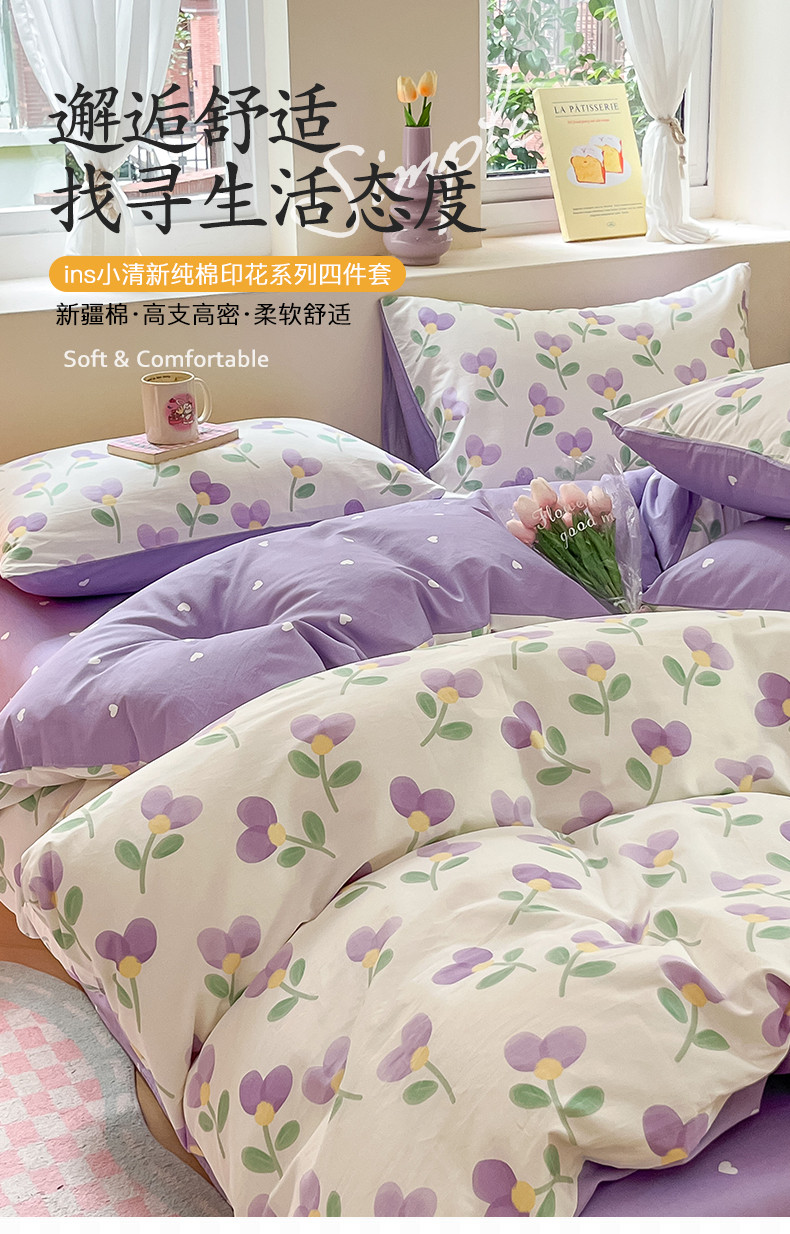 沐棉 2023新款全棉13372小清新印花四件套 紫爱